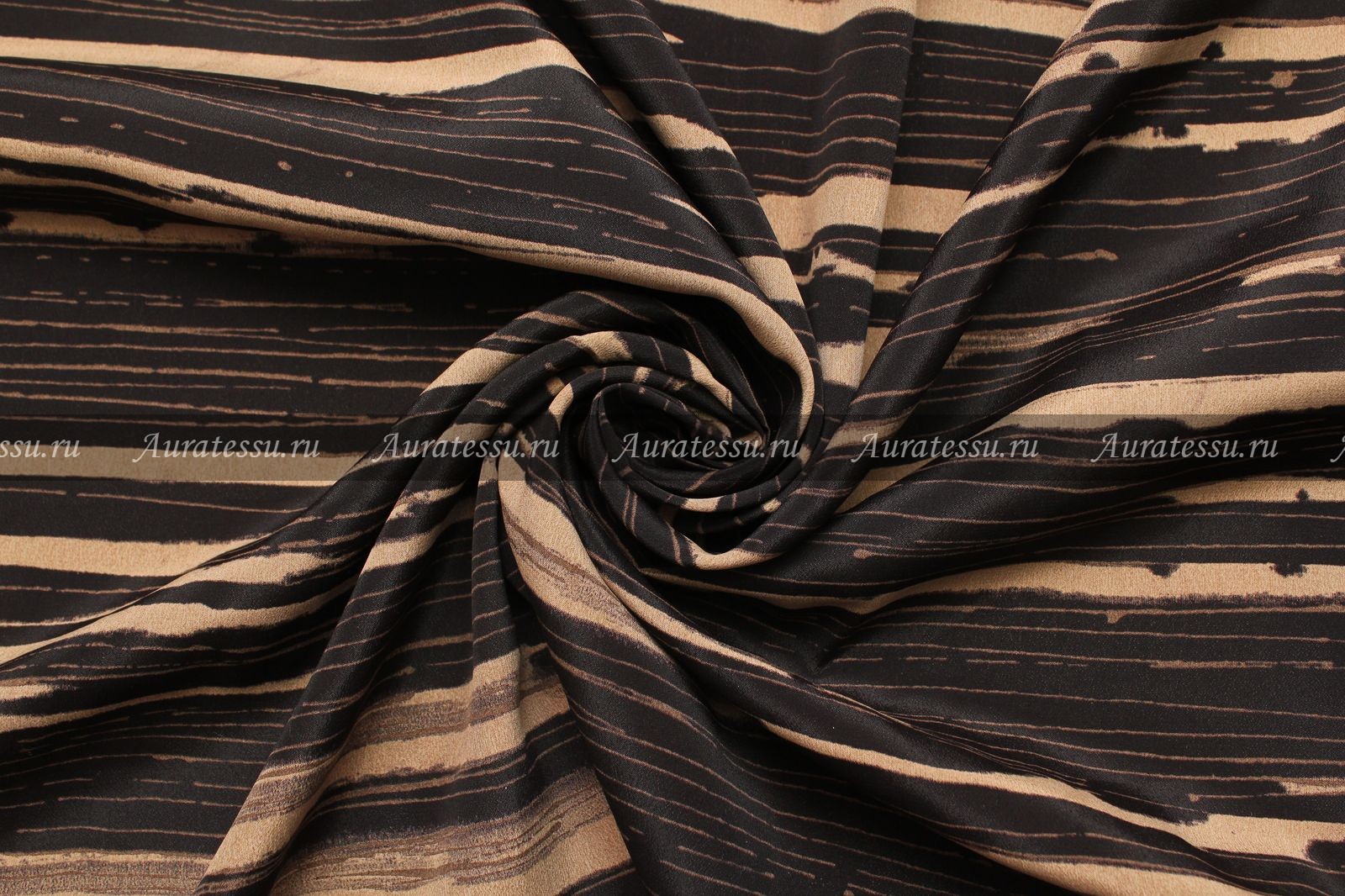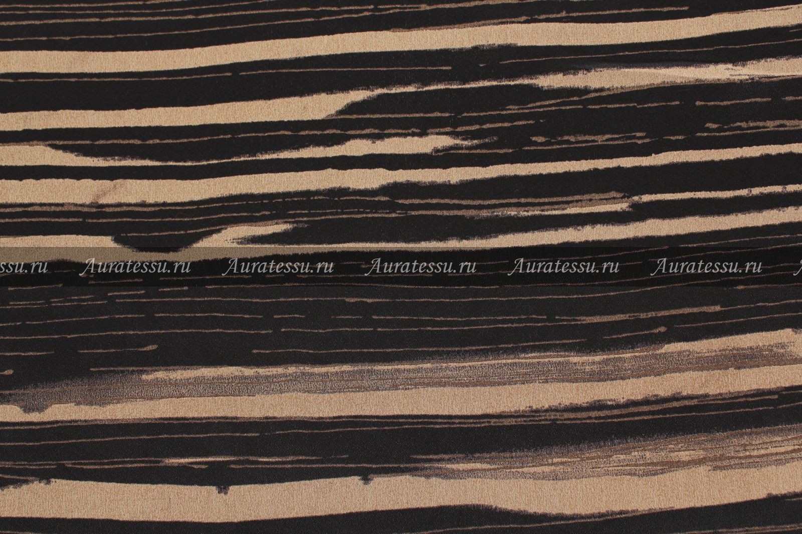 Крепдешин чёрный с бежевыми поперечными неровными полосами