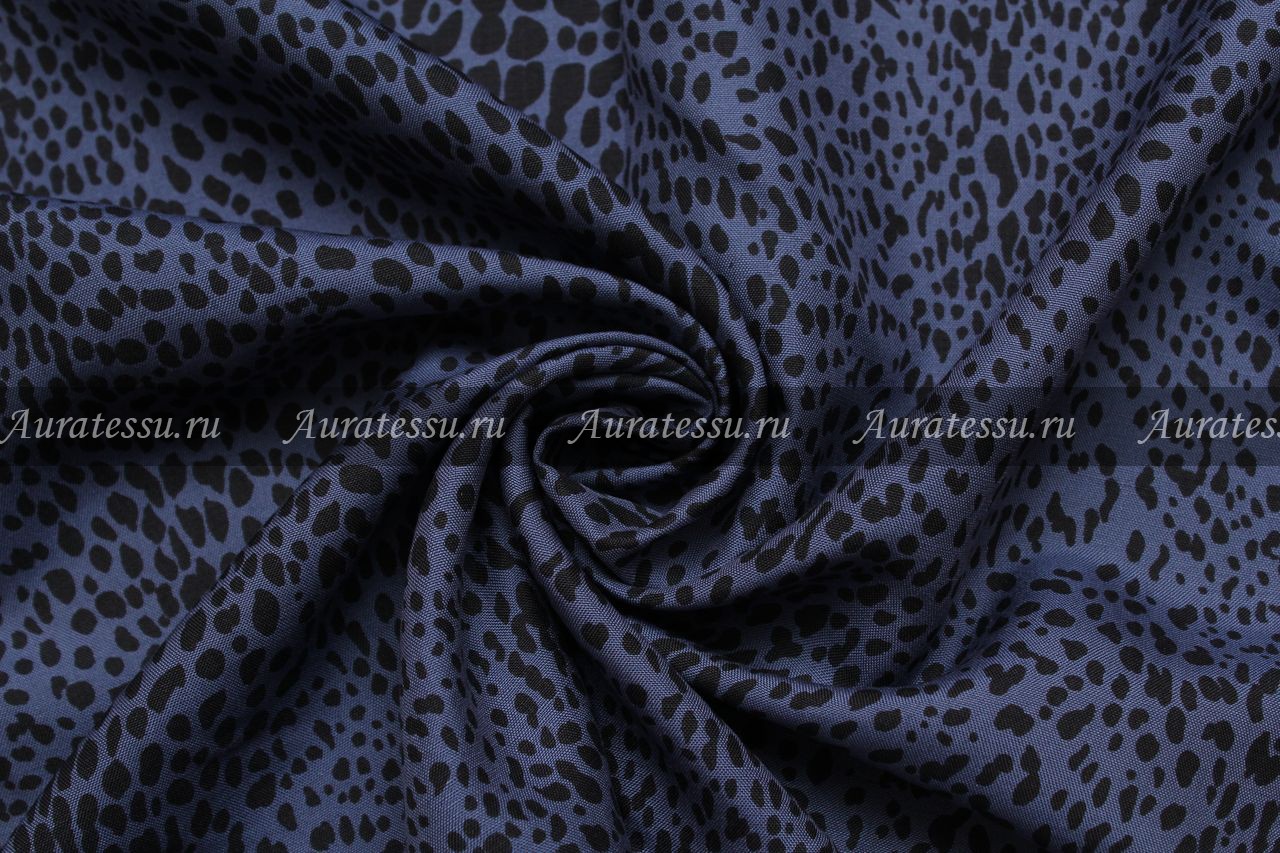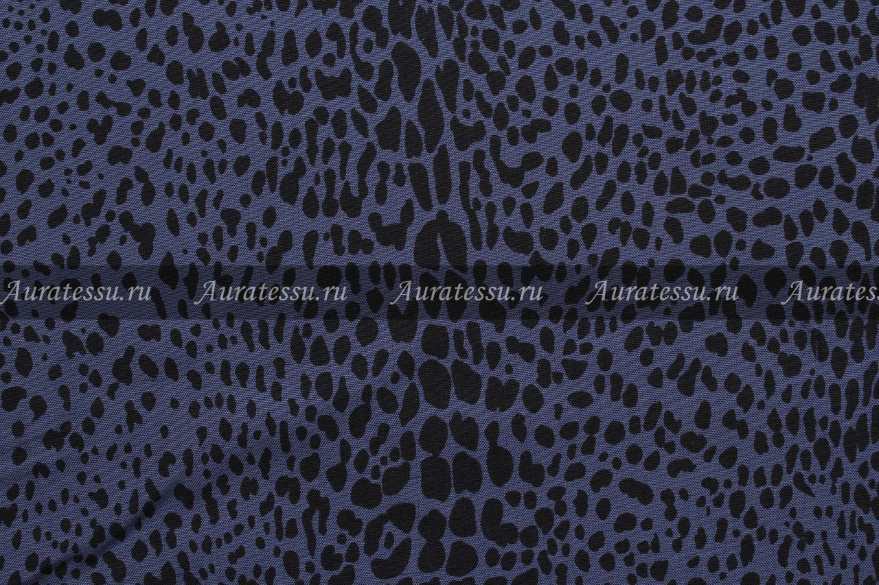 - Шелк плательный чёрные пятна на синем фоне