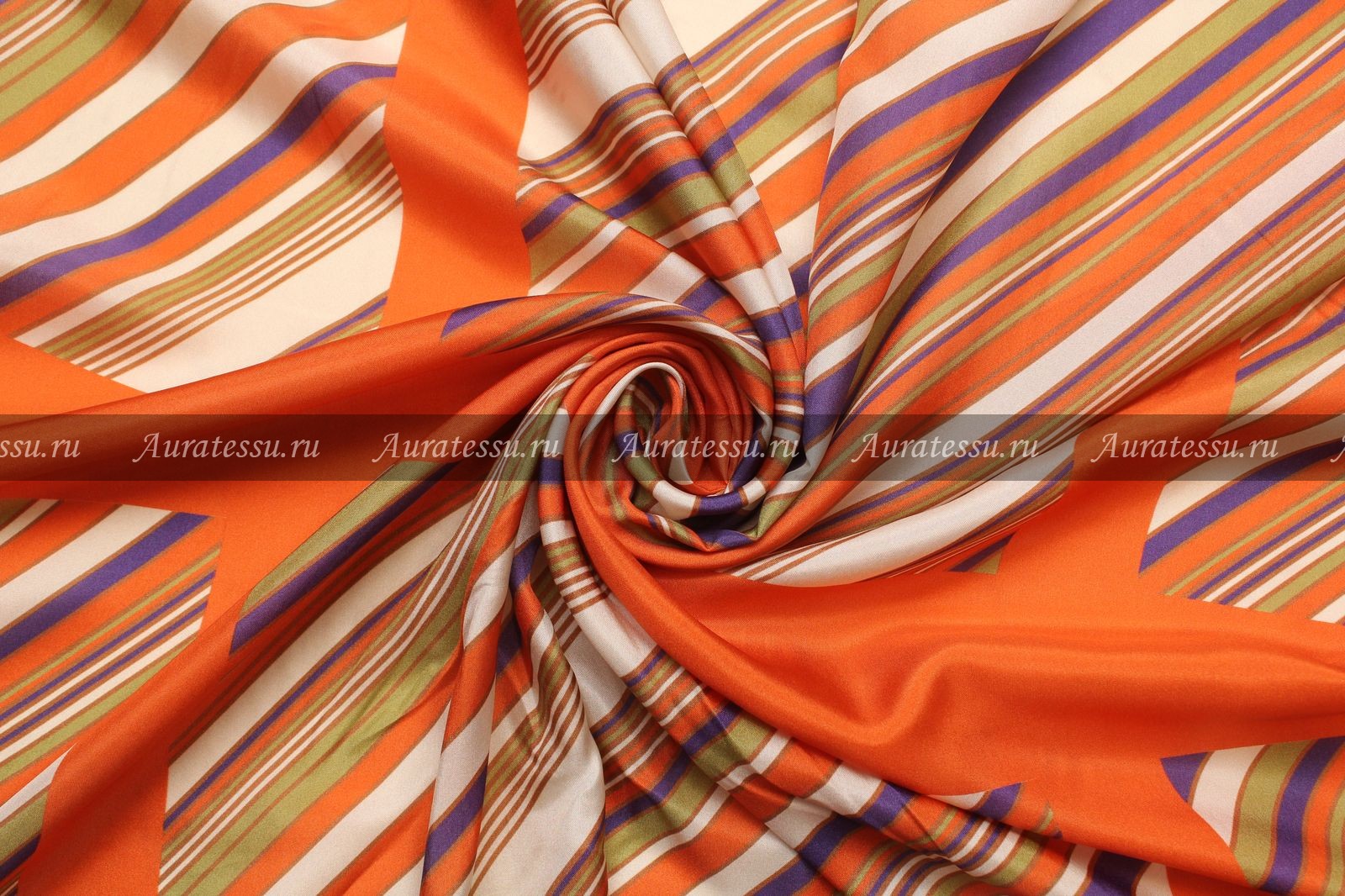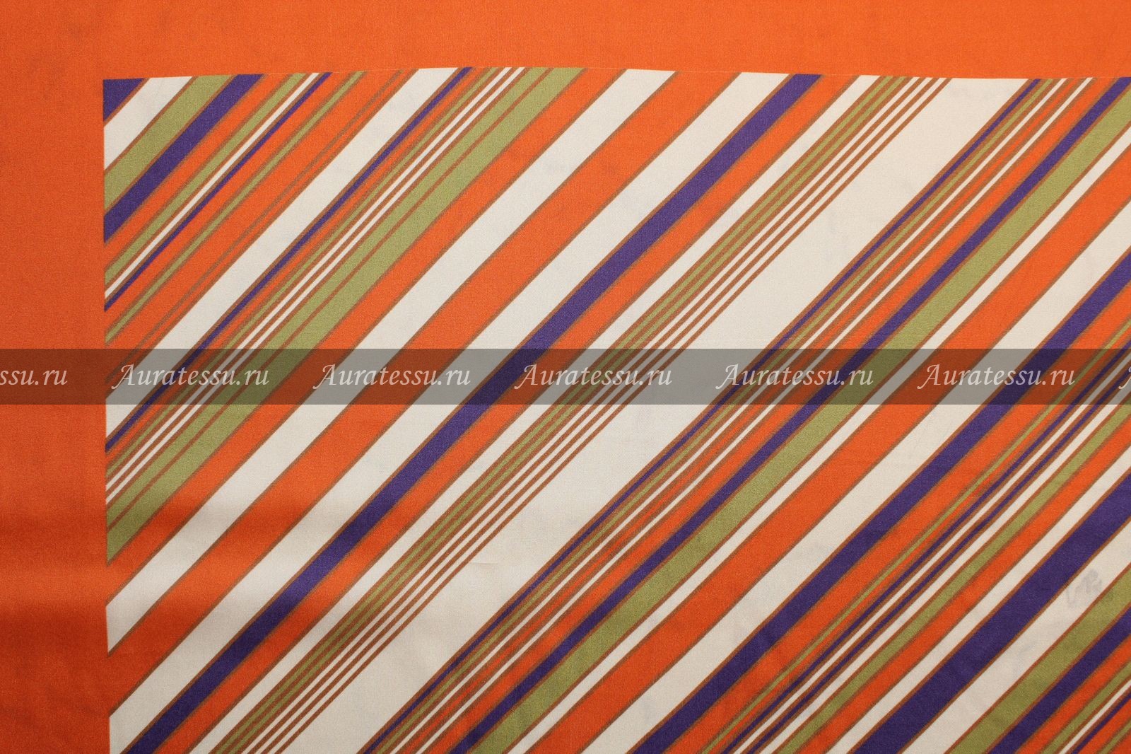 - Шёлк-туаль «платки» с оранжевой каймой в диагональную полоску