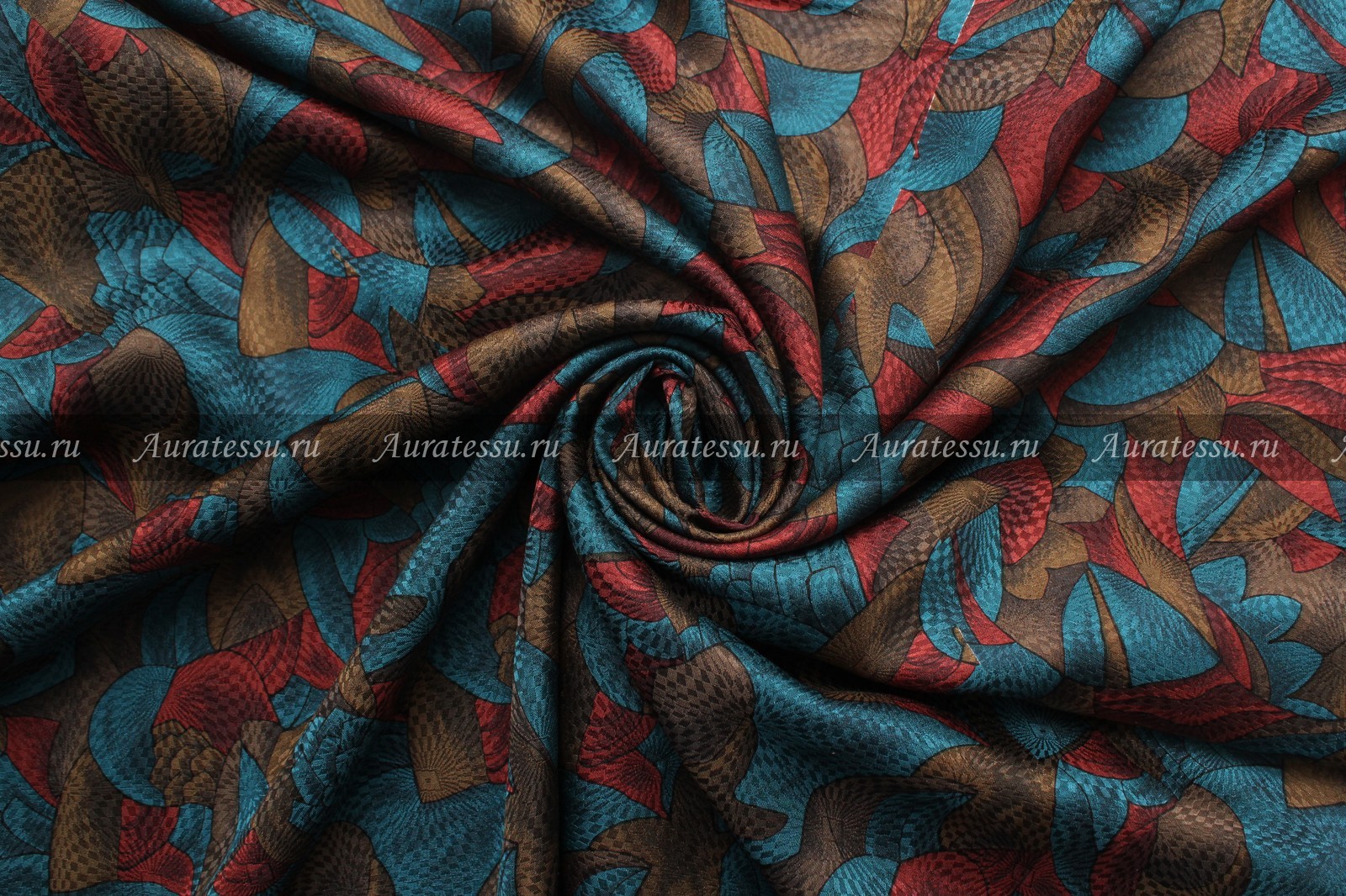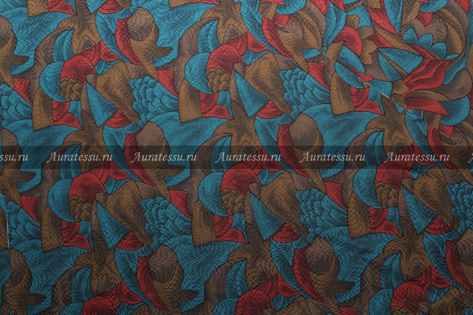 - Шёлковый жаккард с купонным узором галстука в синих, коричневых и кирпичных тонах. Размер купона 100x86 см