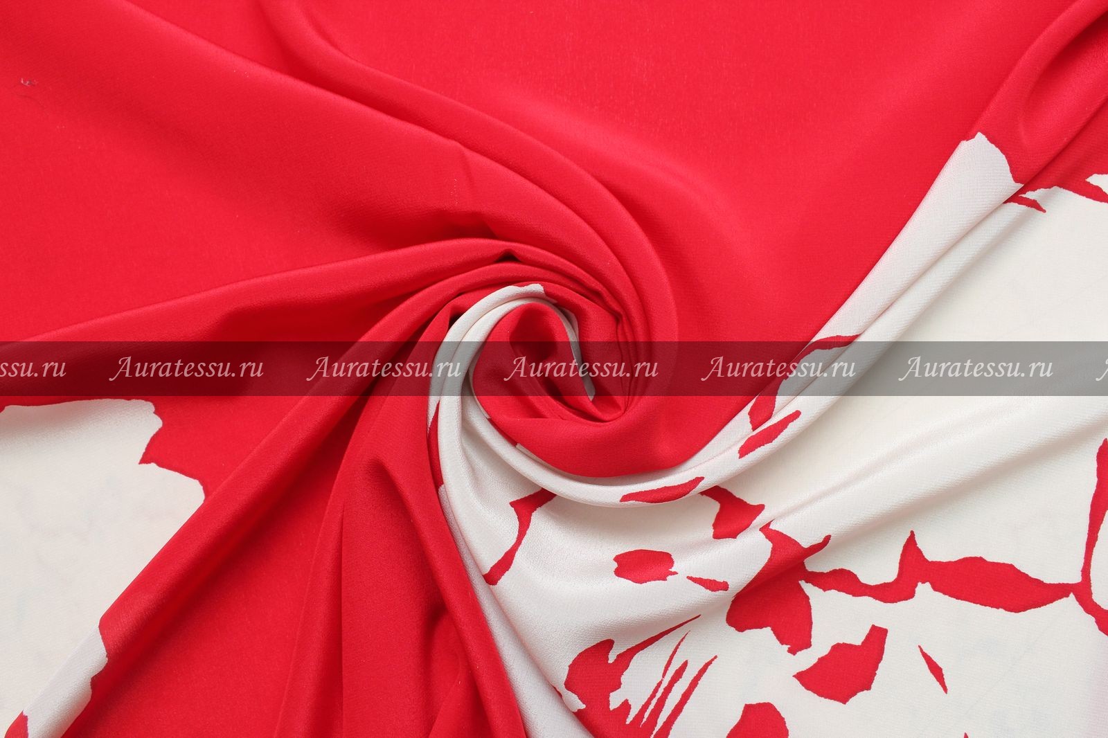- Крепдешин шёлковый Valentino ярко-красный с крупным цветком