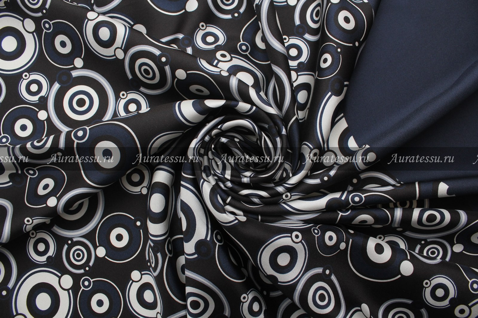 Дополнительная информация:Тонкий 90 г/мп и не прозрачный шёлковый твил в чёрно-синем и белом цветах. Центр полотна с рисунком белых и синих кругов разного диаметра на чёрном фоне. Вдоль обеих кромок широкая тёмно-синяя кайма 29 и 26 см. соответственно. Ширина цветного, центрального участка 81 см. Полотно нежное, пластичное. Подходит для пошива лёгкой плательной и блузочной одежды, возможно, использовать как подкладку для изделий класса люкс. Рекомендации по уходуОбщее правило от производителей для всех видов шелка и шелка в смеске с другими видами натуральных волокон- химчистка: даже если в рекомендациях стоит щадящая стирка,- Шелк нельзя отжимать в машинке и тем более в сушильном аппарате. При отжиме шелка аппаратным способом нарушается структура волокон и эффект непредсказуем. Возможна только сушка в расправленном состоянии или легкий отжим в полотенце. Шелк в смеске с другими натуральными или исусственными тканями - однозначно, химчистка, иначе ткань может "скрутить" из-за разноусадочности нитей. !!!!Из всех правил есть исключения. Смотри пункт №10 ПОДРОБНО ПО всем ВИДАМ ШЕЛКА: 1. Рекомендации по уходу: натуральный шелк – атлас, атлас-деворе (100% шёлк). Производители рекомендуют только сухую чистку. В особенности это касается шелкового атласа. Если хотите сохранить изделие в первозданном виде, то только химчистка. Нельзя при утюжке опрыскивать атласный шёлк так как могут остаться следы от воды. Утюжить с изнанки на сухую. Если хотите поэкспериментировать со своей тканью как она реагирует на стирку, то см. рекомендацию № 10 Производители рекомендуют только сухую чистку. Шифоны из натурального шелка можно стирать в режиме "Щадящая стирка" или "Стирка деликатных тканей" - без отжима, не замачивания, если они без нанесенного рельефного рисунка типа флока или с содержанием люрексовой нити. Для шифонов с флоком и люрексом рекомендации по уходу - сухая чистка. Если хотите поэкспериментировать со своей тканью, как она реагирует на стирку, то см. рекомендацию № 10. Наши эксперименты по стирке таких тканей дают в 70% положительный результат. Производители рекомендуют только сухую чистку. Если полотно без различного рода напыления и люрекса, то возможна стирка. Если хотите поэкспериментировать со своей тканью как она реагирует на стирку, то см. рекомендацию № 10. Для сложно обработанных шёлковых тканей, только сухая чистка. Производители рекомендуют только сухую чистку, так как после стирки ткань потеряет первоначальный лоск, перестанет держать форму. Рекомендации производителей - сухая чистка. Если хотите сохранить изделие в первозданном виде - только химчистка. Нельзя при утюжке опрыскивать водой, могут остаться пятна. Гладить с изнанки на сухую. Если хотите поэкспериментировать со своей тканью, то как она реагирует на стирку, то см. рекомендацию № 10 Рекомендации производителей - сухая чистка. После стирки напыление может деформироваться или осыпаться, люрекс- поблекнуть. Рекомендации всех Европейских производителей шелка, особенно с рисунком или вышивкой - химчистка. Шелковая тафта с вышивкой очень сложная в уходе, потому что как правило - вышивка производится вискозными или синтетическими нитями,а это значит , что при стирке они могут дать разную усадку. Гладить только сухим чистым утюгом с изнанки в режиме "шелк". Ткань после стирки мож