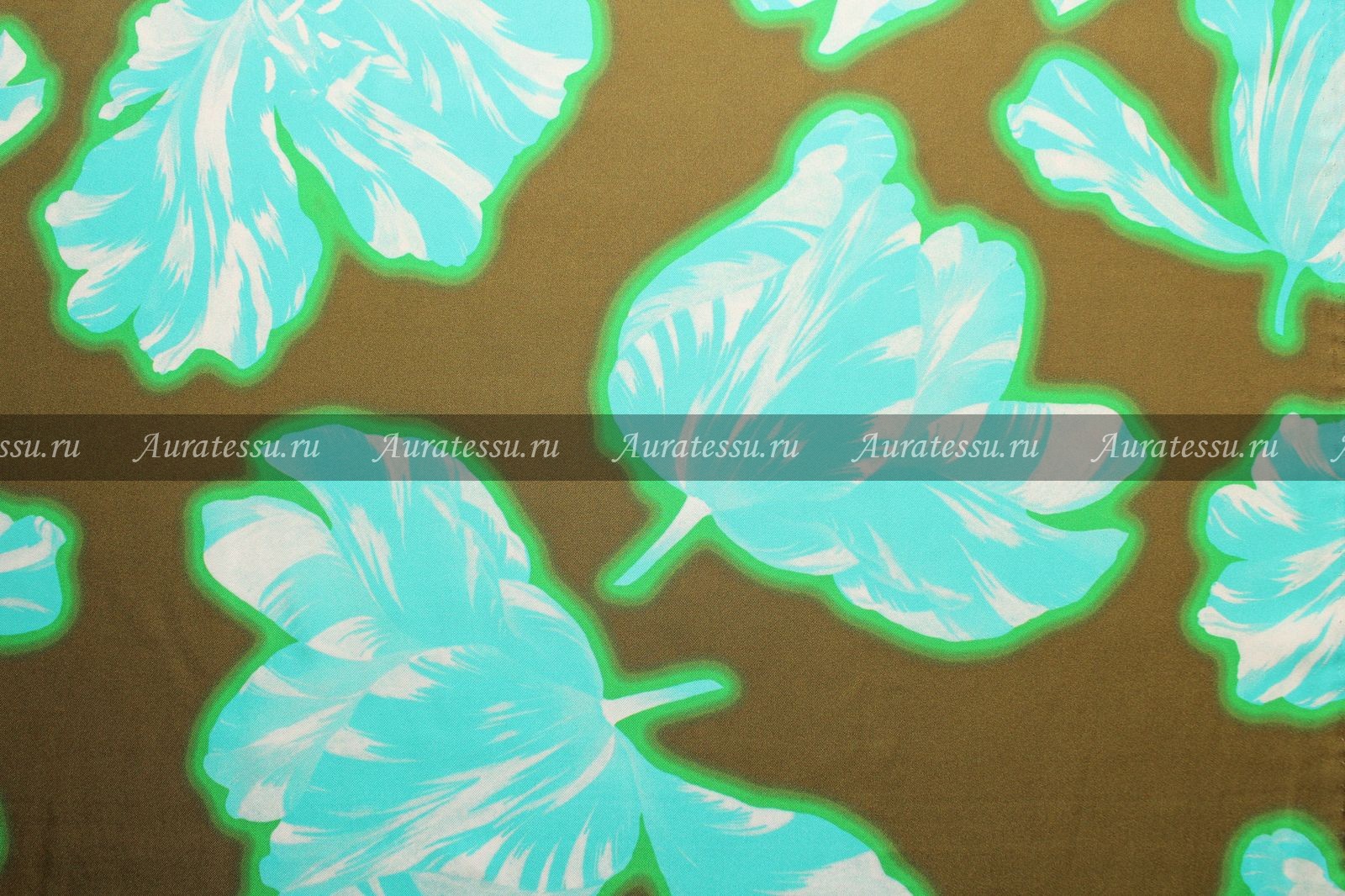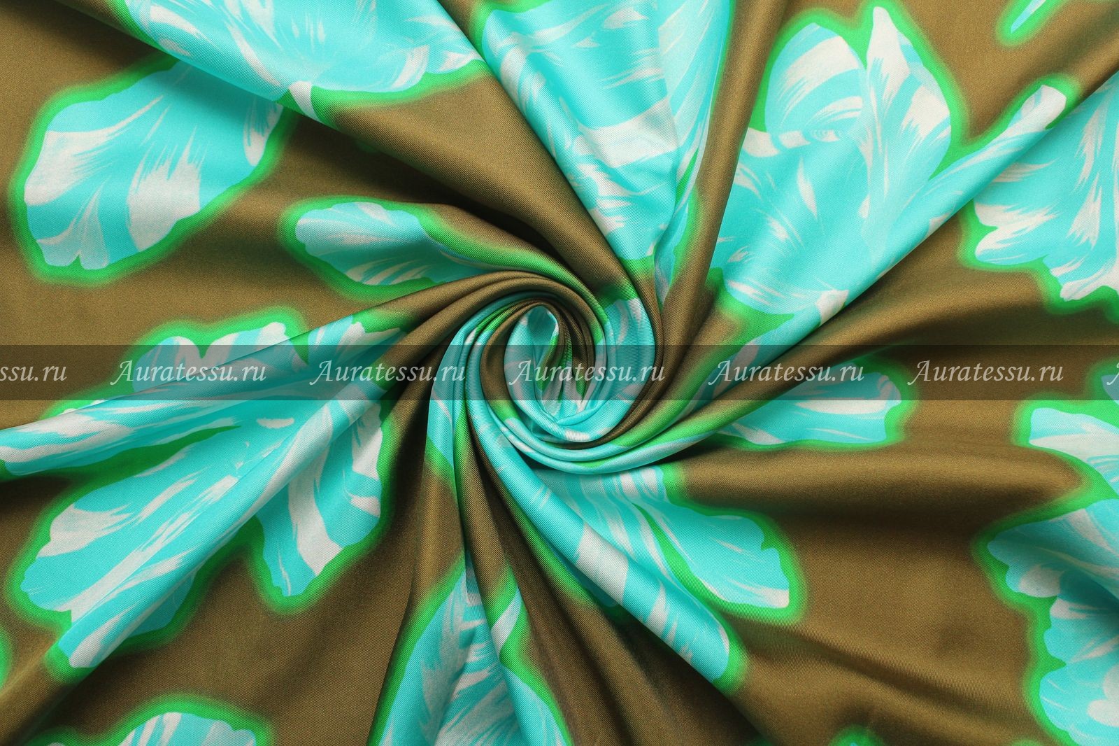 - Шёлк-твил P.A.P.O.S.H. оливкового цвета с бирюзовыми цветами