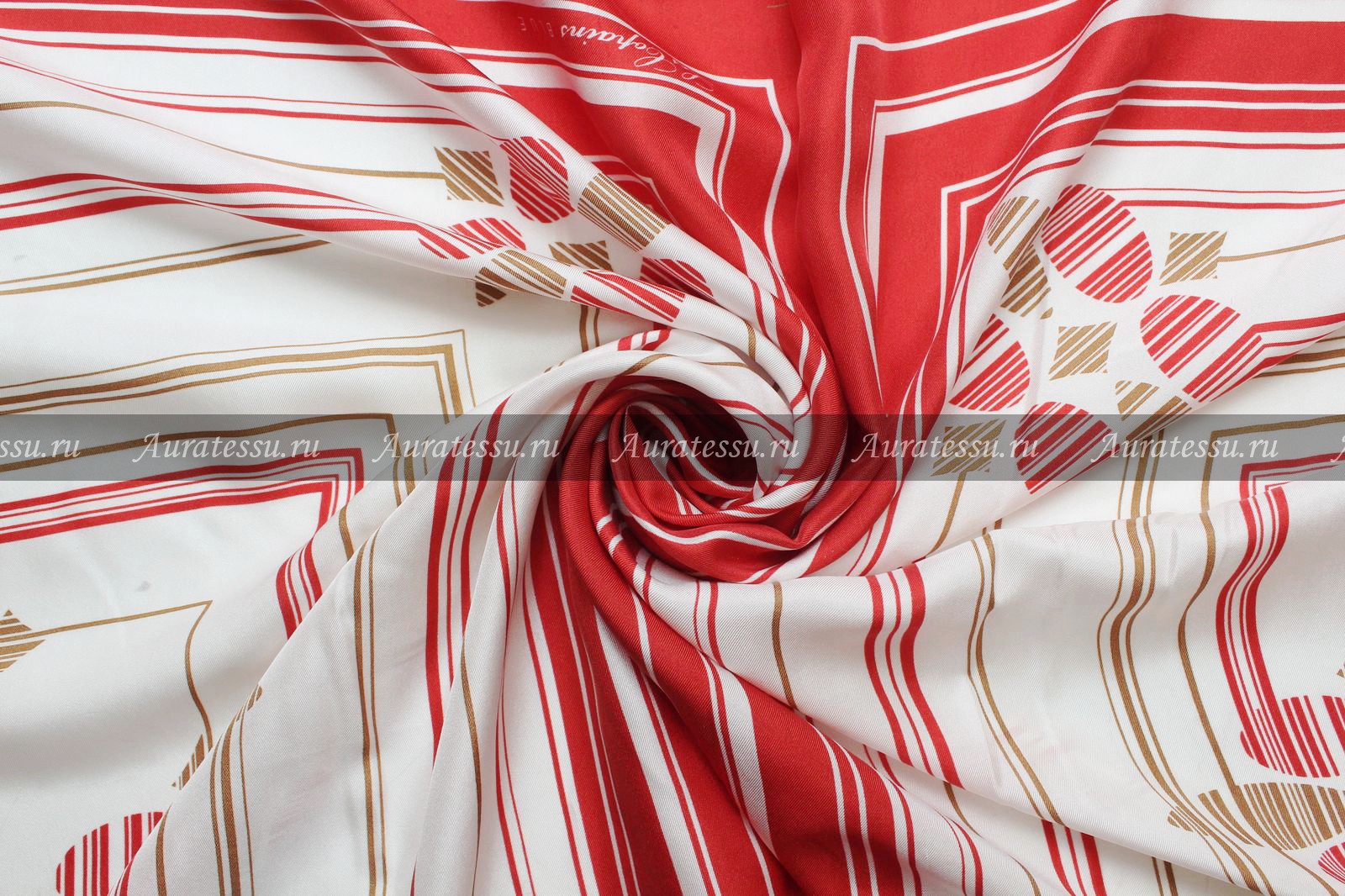 Дополнительная информация:Шёлковый твил кремового цвета с купонным узором платка, с линиями окаёмки в оранжево-красном и оливковом цветах. По углам узора и в центре штриховой рисунок цветов в тех же тонах, что и полосы окаёмки. Размер внешней линии платка 75x75 см. Полотно пластичное, матовое. Подходит для пошива плательной и блузочной одежды, а так же для самостоятельного изделия. Рекомендации по уходуОбщее правило от производителей для всех видов шелка и шелка в смеске с другими видами натуральных волокон- химчистка: даже если в рекомендациях стоит щадящая стирка,- Шелк нельзя отжимать в машинке и тем более в сушильном аппарате. При отжиме шелка аппаратным способом нарушается структура волокон и эффект непредсказуем. Возможна только сушка в расправленном состоянии или легкий отжим в полотенце. Шелк в смеске с другими натуральными или исусственными тканями - однозначно, химчистка, иначе ткань может "скрутить" из-за разноусадочности нитей. !!!!Из всех правил есть исключения. Смотри пункт №10 ПОДРОБНО ПО всем ВИДАМ ШЕЛКА: 1. Рекомендации по уходу: натуральный шелк – атлас, атлас-деворе (100% шёлк). Производители рекомендуют только сухую чистку. В особенности это касается шелкового атласа. Если хотите сохранить изделие в первозданном виде, то только химчистка. Нельзя при утюжке опрыскивать атласный шёлк так как могут остаться следы от воды. Утюжить с изнанки на сухую. Если хотите поэкспериментировать со своей тканью как она реагирует на стирку, то см. рекомендацию № 10 Производители рекомендуют только сухую чистку. Шифоны из натурального шелка можно стирать в режиме "Щадящая стирка" или "Стирка деликатных тканей" - без отжима, не замачивания, если они без нанесенного рельефного рисунка типа флока или с содержанием люрексовой нити. Для шифонов с флоком и люрексом рекомендации по уходу - сухая чистка. Если хотите поэкспериментировать со своей тканью, как она реагирует на стирку, то см. рекомендацию № 10. Наши эксперименты по стирке таких тканей дают в 70% положительный результат. Производители рекомендуют только сухую чистку. Если полотно без различного рода напыления и люрекса, то возможна стирка. Если хотите поэкспериментировать со своей тканью как она реагирует на стирку, то см. рекомендацию № 10. Для сложно обработанных шёлковых тканей, только сухая чистка. Производители рекомендуют только сухую чистку, так как после стирки ткань потеряет первоначальный лоск, перестанет держать форму. Рекомендации производителей - сухая чистка. Если хотите сохранить изделие в первозданном виде - только химчистка. Нельзя при утюжке опрыскивать водой, могут остаться пятна. Гладить с изнанки на сухую. Если хотите поэкспериментировать со своей тканью, то как она реагирует на стирку, то см. рекомендацию № 10 Рекомендации производителей - сухая чистка. После стирки напыление может деформироваться или осыпаться, люрекс- поблекнуть. Рекомендации всех Европейских производителей шелка, особенно с рисунком или вышивкой - химчистка. Шелковая тафта с вышивкой очень сложная в уходе, потому что как правило - вышивка производится вискозными или синтетическими нитями,а это значит , что при стирке они могут дать разную усадку. Гладить только сухим чистым утюгом с изнанки в режиме "шелк". Ткань после стирки может потерять дорогой лоск. Поэтому, конкретно тафту с вышивк