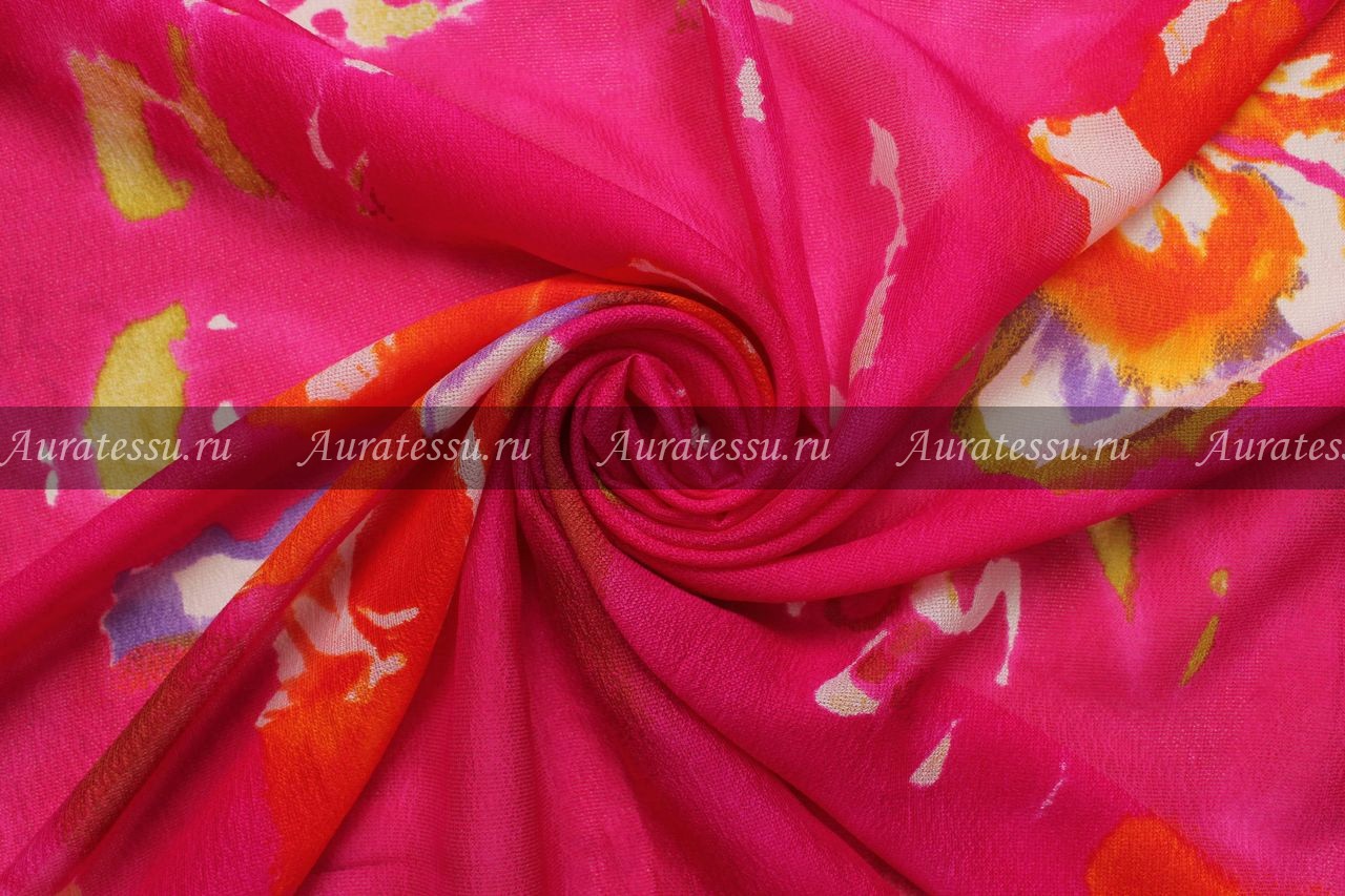Шелк-жоржет Moschino оранжевые цветы на ярко-розовом