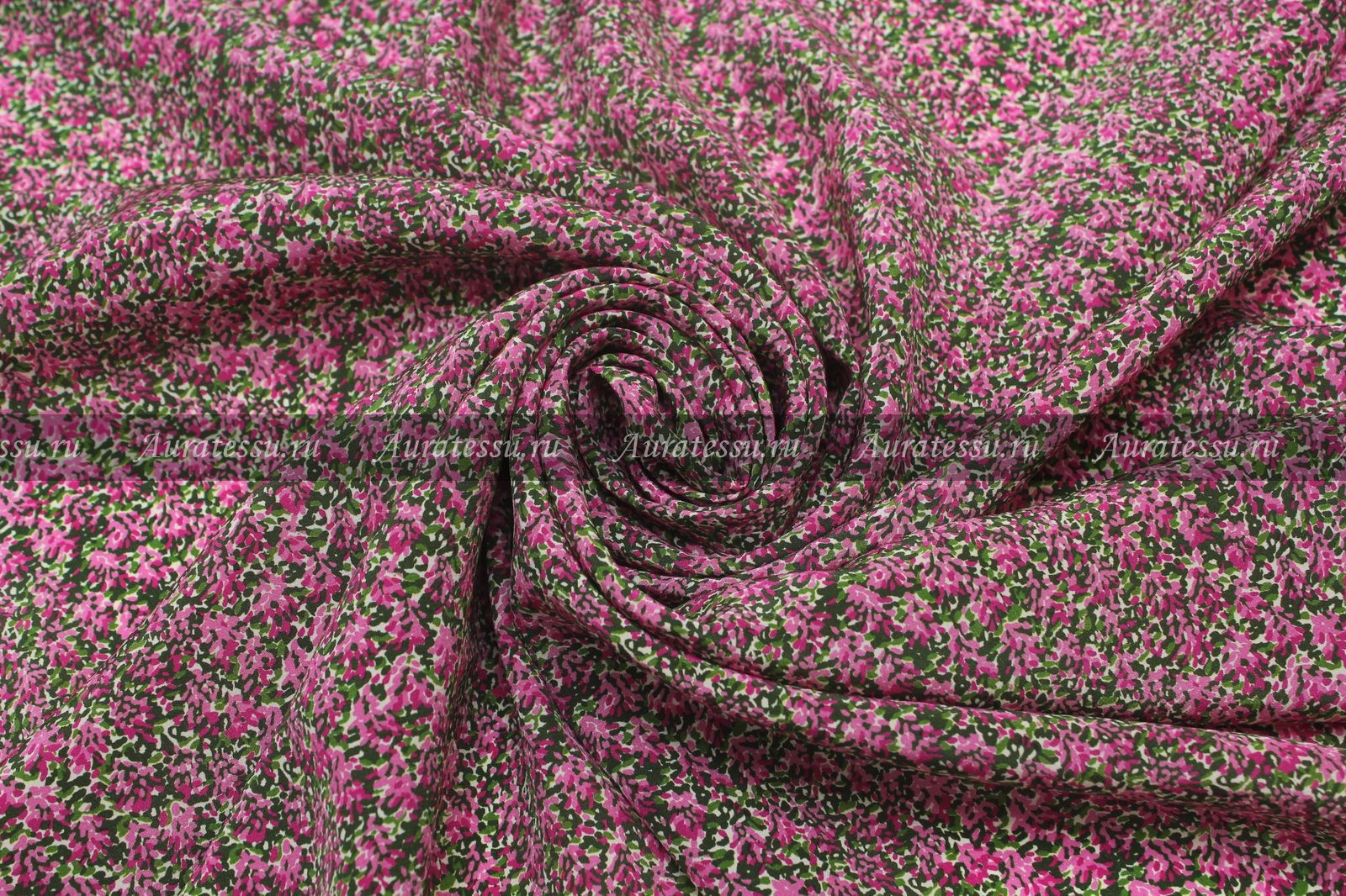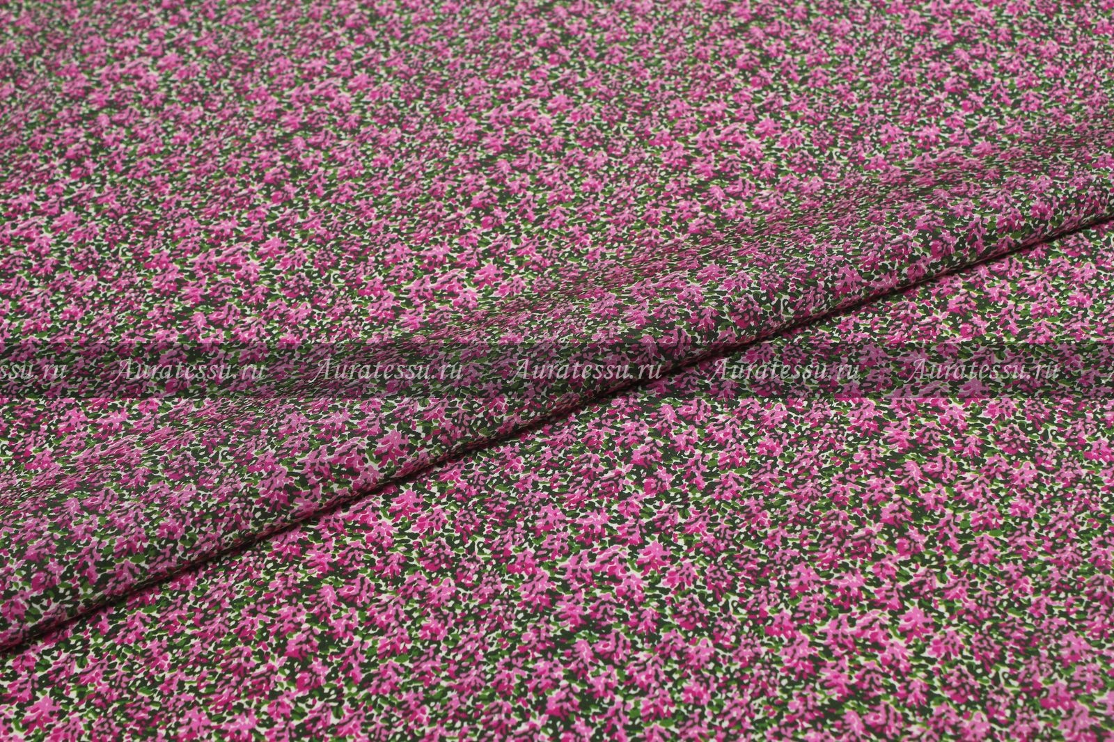 - Шёлк креп зелёно-розовый растительный мелкий узор 100 г/мп
