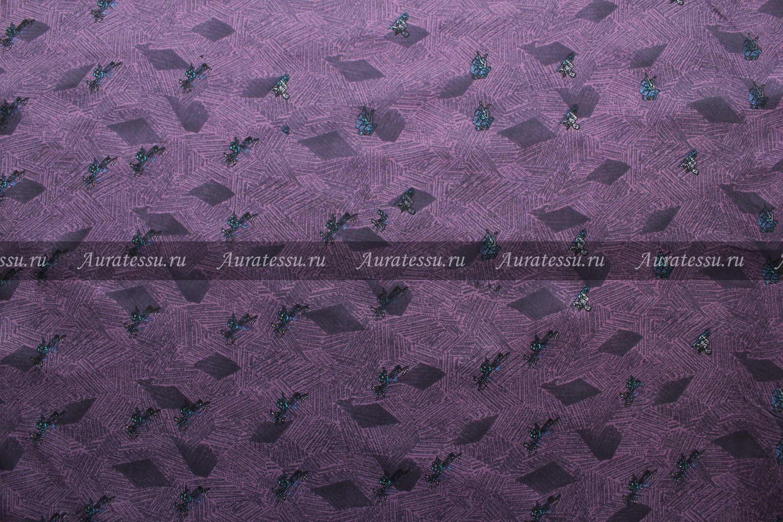 - Шёлковый твил с галстучным купоном в цвете дымчатой орхидеи с серым графическим рисунком с синими фигурками. Размер купона 98x74 см.