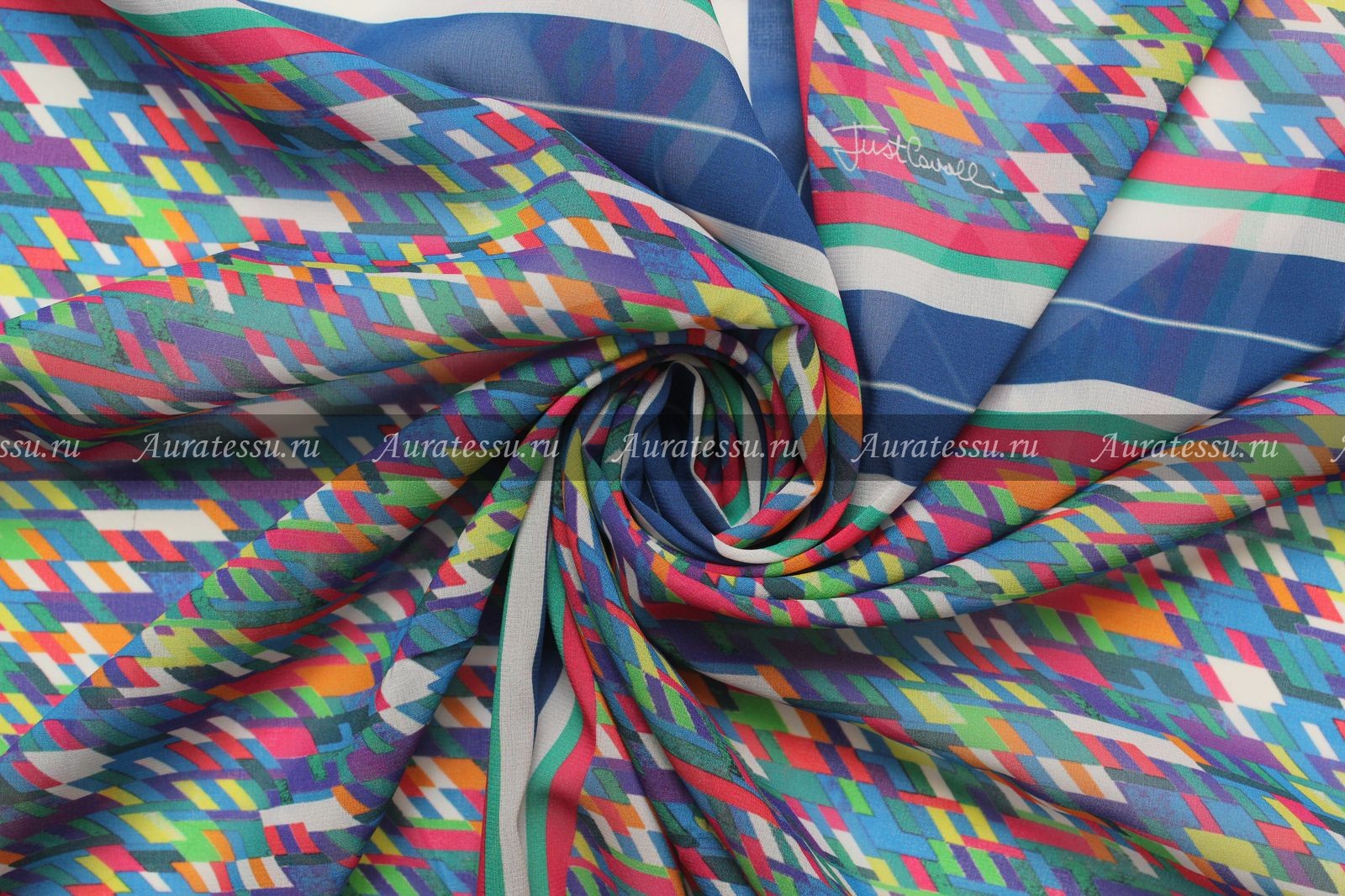 Дополнительная информация:Тонкий и слегка прозрачный шёлк-стрейч с купонным рисунком двух платков. Размер платочка 73*70 см. В рамочке синего, белого, зелёного и красного цвета пёстрый рисунок напоминающий мозаику в калейдоскопе. Яркая цветовая гамма в жёлтых, зелёных, красных, оранжевых, фиолетовых и синих тонах и оттенках. В нижнем левом углу платочек подписан дизайнером Just Cavalli. Полотно слегка упругое, держит форму. Подходит для пошива платков, блуз, платьев и разных отделок. Рекомендации по уходуОбщее правило от производителей для всех видов шелка и шелка в смеске с другими видами натуральных волокон- химчистка: даже если в рекомендациях стоит щадящая стирка,- Шелк нельзя отжимать в машинке и тем более в сушильном аппарате. При отжиме шелка аппаратным способом нарушается структура волокон и эффект непредсказуем. Возможна только сушка в расправленном состоянии или легкий отжим в полотенце. Шелк в смеске с другими натуральными или исусственными тканями - однозначно, химчистка, иначе ткань может "скрутить" из-за разноусадочности нитей. !!!!Из всех правил есть исключения. Смотри пункт №10 ПОДРОБНО ПО всем ВИДАМ ШЕЛКА: 1. Рекомендации по уходу: натуральный шелк – атлас, атлас-деворе (100% шёлк). Производители рекомендуют только сухую чистку. В особенности это касается шелкового атласа. Если хотите сохранить изделие в первозданном виде, то только химчистка. Нельзя при утюжке опрыскивать атласный шёлк так как могут остаться следы от воды. Утюжить с изнанки на сухую. Если хотите поэкспериментировать со своей тканью как она реагирует на стирку, то см. рекомендацию № 10 Производители рекомендуют только сухую чистку. Шифоны из натурального шелка можно стирать в режиме "Щадящая стирка" или "Стирка деликатных тканей" - без отжима, не замачивания, если они без нанесенного рельефного рисунка типа флока или с содержанием люрексовой нити. Для шифонов с флоком и люрексом рекомендации по уходу - сухая чистка. Если хотите поэкспериментировать со своей тканью, как она реагирует на стирку, то см. рекомендацию № 10. Наши эксперименты по стирке таких тканей дают в 70% положительный результат. Производители рекомендуют только сухую чистку. Если полотно без различного рода напыления и люрекса, то возможна стирка. Если хотите поэкспериментировать со своей тканью как она реагирует на стирку, то см. рекомендацию № 10. Для сложно обработанных шёлковых тканей, только сухая чистка. Производители рекомендуют только сухую чистку, так как после стирки ткань потеряет первоначальный лоск, перестанет держать форму. Рекомендации производителей - сухая чистка. Если хотите сохранить изделие в первозданном виде - только химчистка. Нельзя при утюжке опрыскивать водой, могут остаться пятна. Гладить с изнанки на сухую. Если хотите поэкспериментировать со своей тканью, то как она реагирует на стирку, то см. рекомендацию № 10 Рекомендации производителей - сухая чистка. После стирки напыление может деформироваться или осыпаться, люрекс- поблекнуть. Рекомендации всех Европейских производителей шелка, особенно с рисунком или вышивкой - химчистка. Шелковая тафта с вышивкой очень сложная в уходе, потому что как правило - вышивка производится вискозными или синтетическими нитями,а это значит , что при стирке они могут дать разную усадку. Гладить только сухим чистым утюгом с изнанк