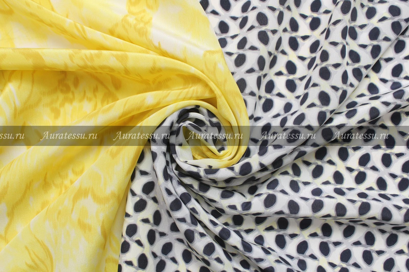 Дополнительная информация:Тонкий шёлковый крепдешин с поперечным рисунком и тёмно-синей каймой вдоль одной кромки. Рисунок начинается с желто-кремовой части мраморного окраса с элементами растительного узора. Ширина жёлтого фрагмента шириной 53 см. Далее фрагмент с геометрическим рисунком в тёмно-синем, серо-жемчужном, лимонном цветах. Длина этого фрагмента около 90 см. Вдоль противоположной от жёлтого фрагмента кромки полоса шириной 6 см мраморного сине-голубого окраса. И заканчивается рисунок тёмно синей каймой шириной 19 см. Полотно нежное и пластичное. Подходит для пошива лёгкой летней одежды свободных силуэтов. В наличии фабричный рулон 32 метра. Рекомендации по уходуОбщее правило от производителей для всех видов шелка и шелка в смеске с другими видами натуральных волокон- химчистка: даже если в рекомендациях стоит щадящая стирка,- Шелк нельзя отжимать в машинке и тем более в сушильном аппарате. При отжиме шелка аппаратным способом нарушается структура волокон и эффект непредсказуем. Возможна только сушка в расправленном состоянии или легкий отжим в полотенце. Шелк в смеске с другими натуральными или исусственными тканями - однозначно, химчистка, иначе ткань может "скрутить" из-за разноусадочности нитей. !!!!Из всех правил есть исключения. Смотри пункт №10 ПОДРОБНО ПО всем ВИДАМ ШЕЛКА: 1. Рекомендации по уходу: натуральный шелк – атлас, атлас-деворе (100% шёлк). Производители рекомендуют только сухую чистку. В особенности это касается шелкового атласа. Если хотите сохранить изделие в первозданном виде, то только химчистка. Нельзя при утюжке опрыскивать атласный шёлк так как могут остаться следы от воды. Утюжить с изнанки на сухую. Если хотите поэкспериментировать со своей тканью как она реагирует на стирку, то см. рекомендацию № 10 Производители рекомендуют только сухую чистку. Шифоны из натурального шелка можно стирать в режиме "Щадящая стирка" или "Стирка деликатных тканей" - без отжима, не замачивания, если они без нанесенного рельефного рисунка типа флока или с содержанием люрексовой нити. Для шифонов с флоком и люрексом рекомендации по уходу - сухая чистка. Если хотите поэкспериментировать со своей тканью, как она реагирует на стирку, то см. рекомендацию № 10. Наши эксперименты по стирке таких тканей дают в 70% положительный результат. Производители рекомендуют только сухую чистку. Если полотно без различного рода напыления и люрекса, то возможна стирка. Если хотите поэкспериментировать со своей тканью как она реагирует на стирку, то см. рекомендацию № 10. Для сложно обработанных шёлковых тканей, только сухая чистка. Производители рекомендуют только сухую чистку, так как после стирки ткань потеряет первоначальный лоск, перестанет держать форму. Рекомендации производителей - сухая чистка. Если хотите сохранить изделие в первозданном виде - только химчистка. Нельзя при утюжке опрыскивать водой, могут остаться пятна. Гладить с изнанки на сухую. Если хотите поэкспериментировать со своей тканью, то как она реагирует на стирку, то см. рекомендацию № 10 Рекомендации производителей - сухая чистка. После стирки напыление может деформироваться или осыпаться, люрекс- поблекнуть. Рекомендации всех Европейских производителей шелка, особенно с рисунком или вышивкой - химчистка. Шелковая тафта с вышивкой очень сложная в уходе, потом
