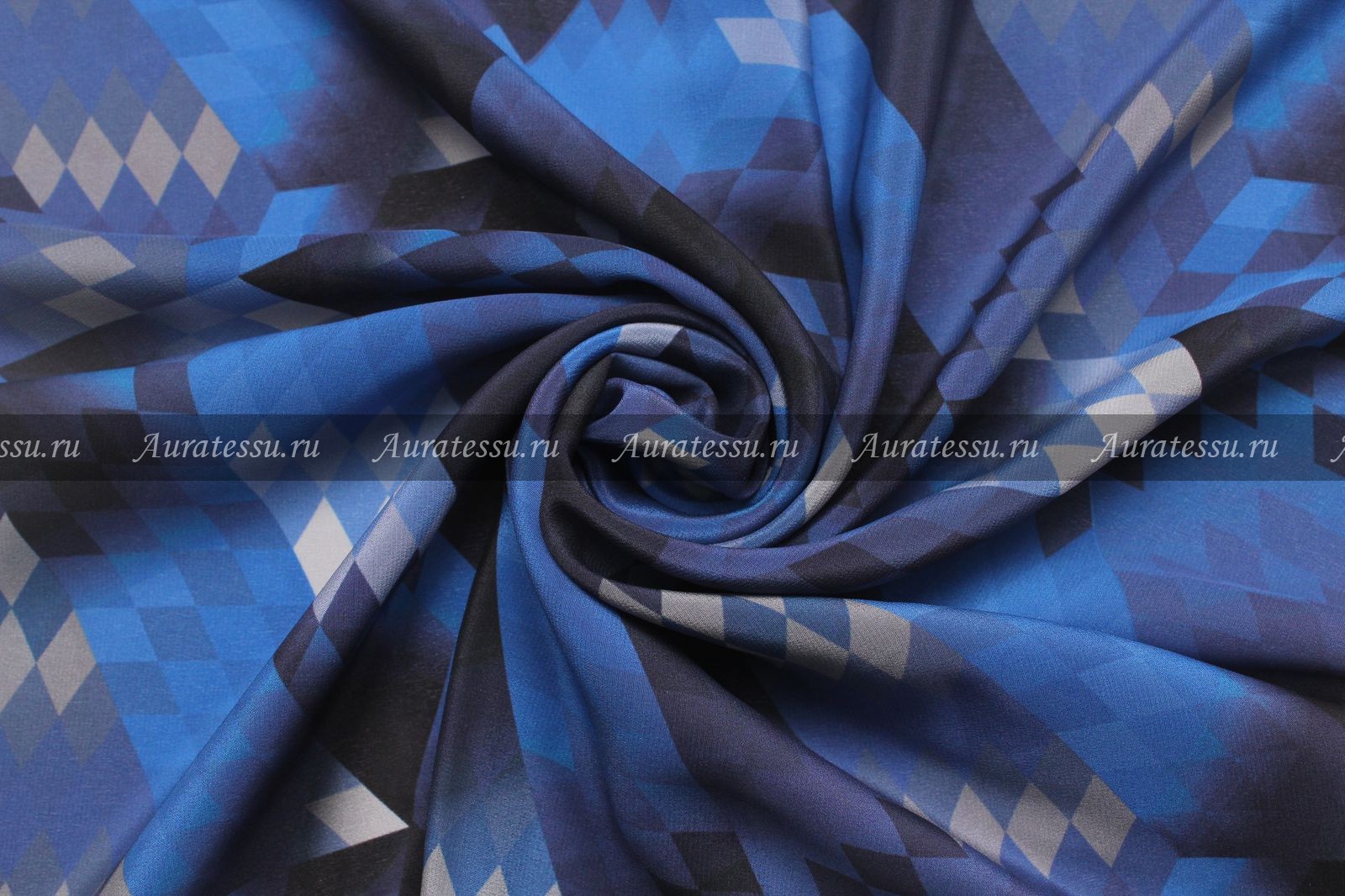 Шёлк-креп Hermes FR серо-синий рисунок в ромб