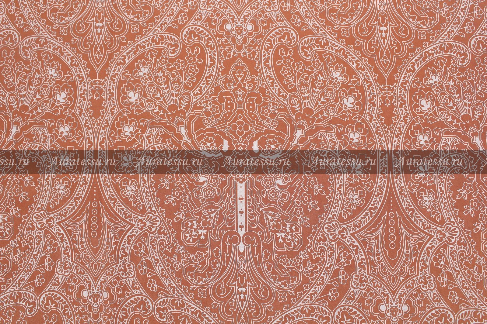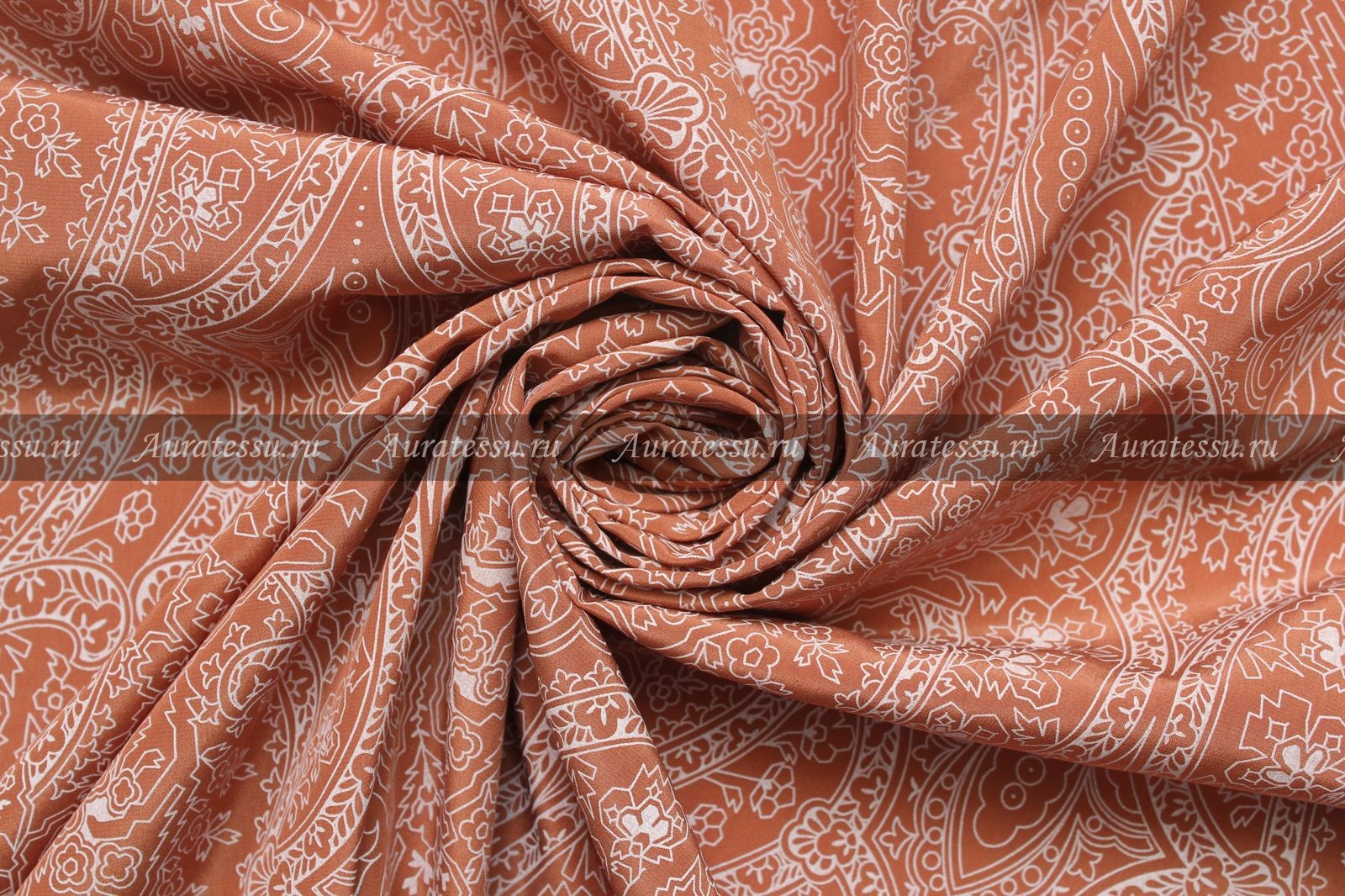 - Крепдешин-шёлк Etro белый вензельный узор на терракотовом фоне