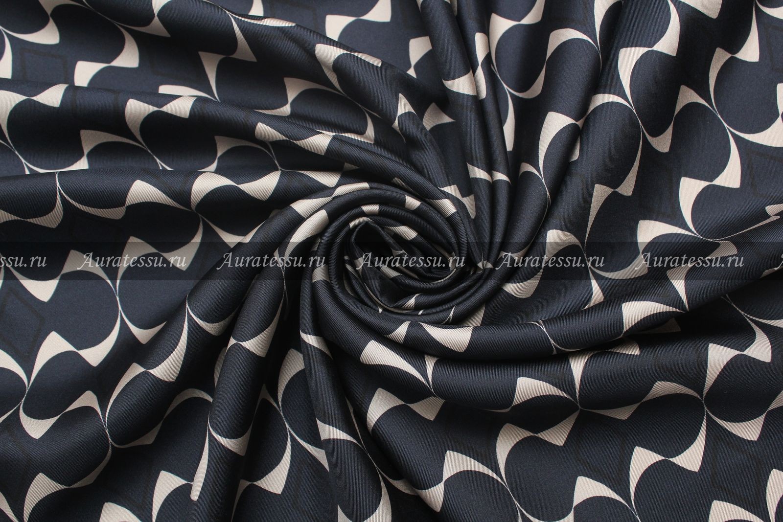 Шёлк твил Gucci тёмно-синий с кремовым 90 г/мп