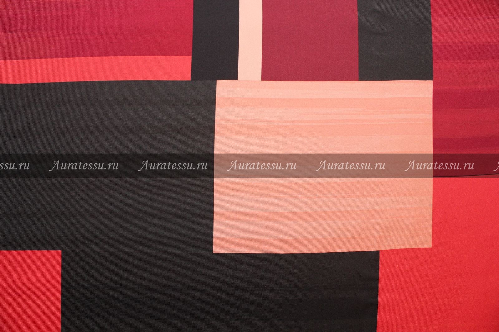 Шёлковый твил Marini с геометрическим узором в вишнёвых, красных, розовых и чёрных тонах