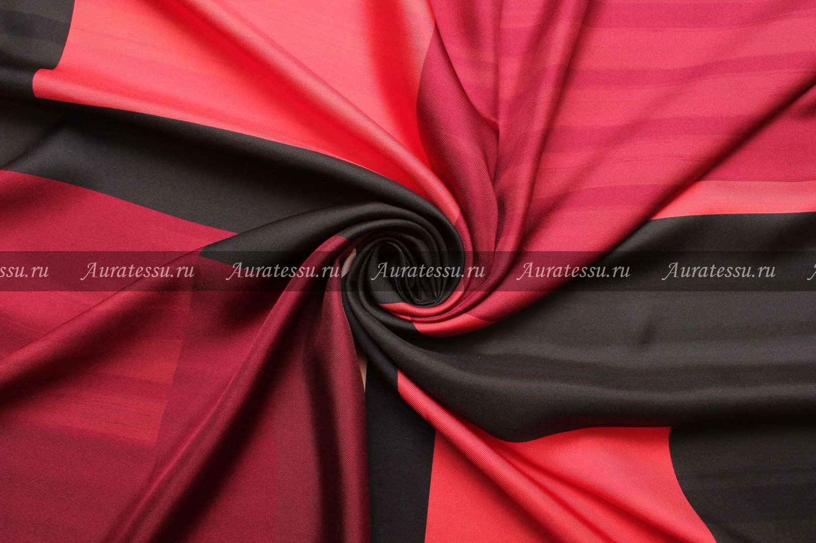- Шёлковый твил Marini с геометрическим узором в вишнёвых, красных, розовых и чёрных тонах