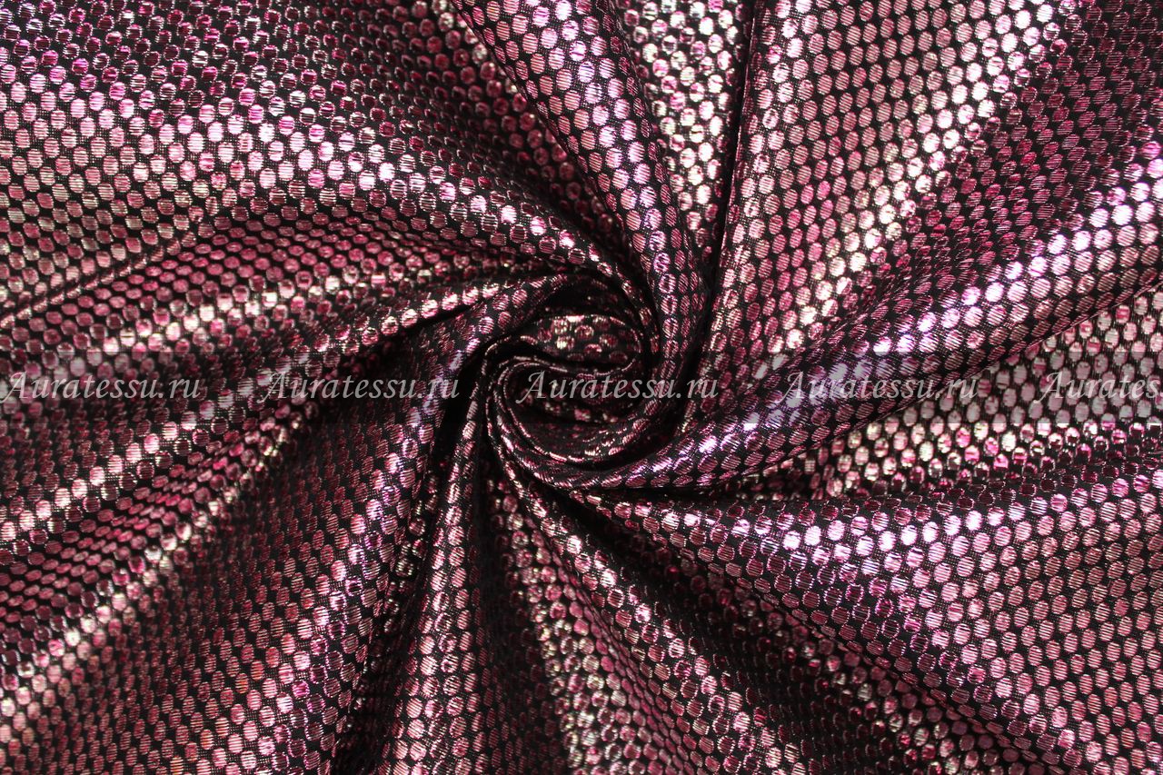 Дополнительная информация:Чёрная жаккардовая ткань (шёлк по основе и вискоза по утку) с серебристым и розовым люрексом. Блестящий узор в вилле продолговатых чешуек с не ровным окрасом. Полотно тонкое, но не прозрачное, хорошо держит форму. Подходит для пошива нарядной одежды, отделок и украшений. Рекомендации по уходуОбщее правило от производителей для всех видов шелка и шелка в смеске с другими видами натуральных волокон- химчистка: даже если в рекомендациях стоит щадящая стирка,- Шелк нельзя отжимать в машинке и тем более в сушильном аппарате. При отжиме шелка аппаратным способом нарушается структура волокон и эффект непредсказуем. Возможна только сушка в расправленном состоянии или легкий отжим в полотенце. Шелк в смеске с другими натуральными или исусственными тканями - однозначно, химчистка, иначе ткань может "скрутить" из-за разноусадочности нитей. !!!!Из всех правил есть исключения. Смотри пункт №10 ПОДРОБНО ПО всем ВИДАМ ШЕЛКА: 1. Рекомендации по уходу: натуральный шелк – атлас, атлас-деворе (100% шёлк). Производители рекомендуют только сухую чистку. В особенности это касается шелкового атласа. Если хотите сохранить изделие в первозданном виде, то только химчистка. Нельзя при утюжке опрыскивать атласный шёлк так как могут остаться следы от воды. Утюжить с изнанки на сухую. Если хотите поэкспериментировать со своей тканью как она реагирует на стирку, то см. рекомендацию № 10 Производители рекомендуют только сухую чистку. Шифоны из натурального шелка можно стирать в режиме "Щадящая стирка" или "Стирка деликатных тканей" - без отжима, не замачивания, если они без нанесенного рельефного рисунка типа флока или с содержанием люрексовой нити. Для шифонов с флоком и люрексом рекомендации по уходу - сухая чистка. Если хотите поэкспериментировать со своей тканью, как она реагирует на стирку, то см. рекомендацию № 10. Наши эксперименты по стирке таких тканей дают в 70% положительный результат. Производители рекомендуют только сухую чистку. Если полотно без различного рода напыления и люрекса, то возможна стирка. Если хотите поэкспериментировать со своей тканью как она реагирует на стирку, то см. рекомендацию № 10. Для сложно обработанных шёлковых тканей, только сухая чистка. Производители рекомендуют только сухую чистку, так как после стирки ткань потеряет первоначальный лоск, перестанет держать форму. Рекомендации производителей - сухая чистка. Если хотите сохранить изделие в первозданном виде - только химчистка. Нельзя при утюжке опрыскивать водой, могут остаться пятна. Гладить с изнанки на сухую. Если хотите поэкспериментировать со своей тканью, то как она реагирует на стирку, то см. рекомендацию № 10 Рекомендации производителей - сухая чистка. После стирки напыление может деформироваться или осыпаться, люрекс- поблекнуть. Рекомендации всех Европейских производителей шелка, особенно с рисунком или вышивкой - химчистка. Шелковая тафта с вышивкой очень сложная в уходе, потому что как правило - вышивка производится вискозными или синтетическими нитями,а это значит , что при стирке они могут дать разную усадку. Гладить только сухим чистым утюгом с изнанки в режиме "шелк". Ткань после стирки может потерять дорогой лоск. Поэтому, конкретно тафту с вышивкой и нанесенным рисунком лучше отдавать в сухую чистку. Если хотите поэкспериментир