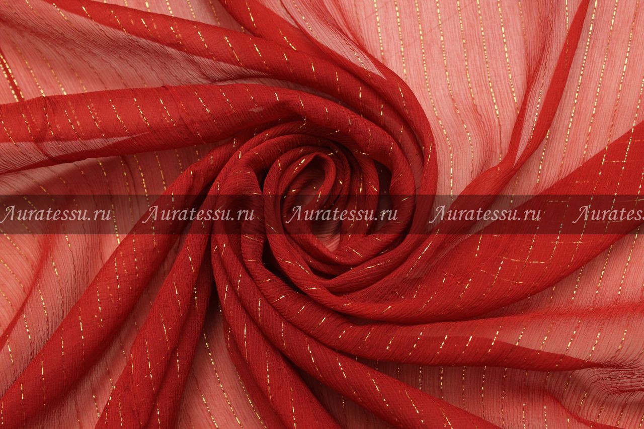 Дополнительная информация:Тонкий полупрозрачный шёлковый шифон кирпично-красного цвета с узором в продольную золотистую люрексовую полоску. Ткань нежная и пластичная. Подходит для пошива лёгкой одежды не узких силуэтов. Рекомендации по уходуОбщее правило от производителей для всех видов шелка и шелка в смеске с другими видами натуральных волокон- химчистка: даже если в рекомендациях стоит щадящая стирка,- Шелк нельзя отжимать в машинке и тем более в сушильном аппарате. При отжиме шелка аппаратным способом нарушается структура волокон и эффект непредсказуем. Возможна только сушка в расправленном состоянии или легкий отжим в полотенце. Шелк в смеске с другими натуральными или исусственными тканями - однозначно, химчистка, иначе ткань может "скрутить" из-за разноусадочности нитей. !!!!Из всех правил есть исключения. Смотри пункт №10 ПОДРОБНО ПО всем ВИДАМ ШЕЛКА: 1. Рекомендации по уходу: натуральный шелк – атлас, атлас-деворе (100% шёлк). Производители рекомендуют только сухую чистку. В особенности это касается шелкового атласа. Если хотите сохранить изделие в первозданном виде, то только химчистка. Нельзя при утюжке опрыскивать атласный шёлк так как могут остаться следы от воды. Утюжить с изнанки на сухую. Если хотите поэкспериментировать со своей тканью как она реагирует на стирку, то см. рекомендацию № 10 Производители рекомендуют только сухую чистку. Шифоны из натурального шелка можно стирать в режиме "Щадящая стирка" или "Стирка деликатных тканей" - без отжима, не замачивания, если они без нанесенного рельефного рисунка типа флока или с содержанием люрексовой нити. Для шифонов с флоком и люрексом рекомендации по уходу - сухая чистка. Если хотите поэкспериментировать со своей тканью, как она реагирует на стирку, то см. рекомендацию № 10. Наши эксперименты по стирке таких тканей дают в 70% положительный результат. Производители рекомендуют только сухую чистку. Если полотно без различного рода напыления и люрекса, то возможна стирка. Если хотите поэкспериментировать со своей тканью как она реагирует на стирку, то см. рекомендацию № 10. Для сложно обработанных шёлковых тканей, только сухая чистка. Производители рекомендуют только сухую чистку, так как после стирки ткань потеряет первоначальный лоск, перестанет держать форму. Рекомендации производителей - сухая чистка. Если хотите сохранить изделие в первозданном виде - только химчистка. Нельзя при утюжке опрыскивать водой, могут остаться пятна. Гладить с изнанки на сухую. Если хотите поэкспериментировать со своей тканью, то как она реагирует на стирку, то см. рекомендацию № 10 Рекомендации производителей - сухая чистка. После стирки напыление может деформироваться или осыпаться, люрекс- поблекнуть. Рекомендации всех Европейских производителей шелка, особенно с рисунком или вышивкой - химчистка. Шелковая тафта с вышивкой очень сложная в уходе, потому что как правило - вышивка производится вискозными или синтетическими нитями,а это значит , что при стирке они могут дать разную усадку. Гладить только сухим чистым утюгом с изнанки в режиме "шелк". Ткань после стирки может потерять дорогой лоск. Поэтому, конкретно тафту с вышивкой и нанесенным рисунком лучше отдавать в сухую чистку. Если хотите поэкспериментировать со своей тканью, то как она реагирует на стирку, то см. рекомендацию 