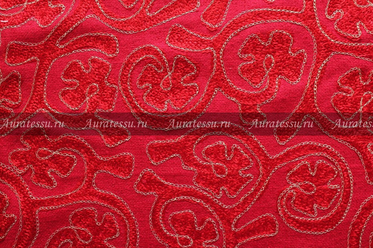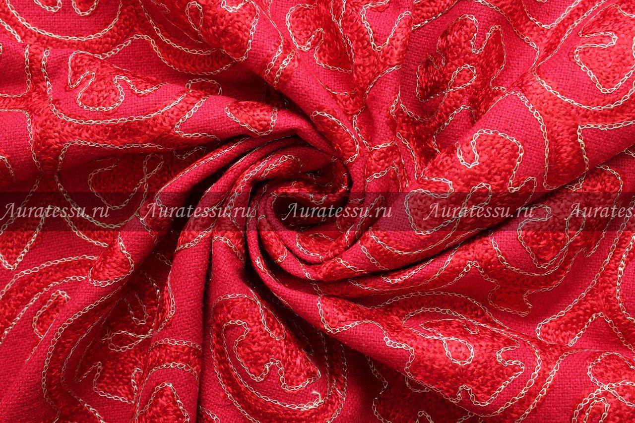 Дополнительная информация:Костюмный шёлк средней плотности, полотняного переплетения, красно-малинового цвета с структурой переплетения нитей напоминающих рогожку. По лицевой стороне ткани красной глянцевой нитью выполнена вензельная вышивка, фигурки которой обрамлены золотистым люрексом (так же вышивка). Полотно держит форму, упругое. Подходит для пошива плательной костюмной одежды прямых, объёмных силуэтов. Рекомендации по уходуОбщее правило от производителей для всех видов шелка и шелка в смеске с другими видами натуральных волокон- химчистка: даже если в рекомендациях стоит щадящая стирка,- Шелк нельзя отжимать в машинке и тем более в сушильном аппарате. При отжиме шелка аппаратным способом нарушается структура волокон и эффект непредсказуем. Возможна только сушка в расправленном состоянии или легкий отжим в полотенце. Шелк в смеске с другими натуральными или исусственными тканями - однозначно, химчистка, иначе ткань может "скрутить" из-за разноусадочности нитей. !!!!Из всех правил есть исключения. Смотри пункт №10 ПОДРОБНО ПО всем ВИДАМ ШЕЛКА: 1. Рекомендации по уходу: натуральный шелк – атлас, атлас-деворе (100% шёлк). Производители рекомендуют только сухую чистку. В особенности это касается шелкового атласа. Если хотите сохранить изделие в первозданном виде, то только химчистка. Нельзя при утюжке опрыскивать атласный шёлк так как могут остаться следы от воды. Утюжить с изнанки на сухую. Если хотите поэкспериментировать со своей тканью как она реагирует на стирку, то см. рекомендацию № 10 Производители рекомендуют только сухую чистку. Шифоны из натурального шелка можно стирать в режиме "Щадящая стирка" или "Стирка деликатных тканей" - без отжима, не замачивания, если они без нанесенного рельефного рисунка типа флока или с содержанием люрексовой нити. Для шифонов с флоком и люрексом рекомендации по уходу - сухая чистка. Если хотите поэкспериментировать со своей тканью, как она реагирует на стирку, то см. рекомендацию № 10. Наши эксперименты по стирке таких тканей дают в 70% положительный результат. Производители рекомендуют только сухую чистку. Если полотно без различного рода напыления и люрекса, то возможна стирка. Если хотите поэкспериментировать со своей тканью как она реагирует на стирку, то см. рекомендацию № 10. Для сложно обработанных шёлковых тканей, только сухая чистка. Производители рекомендуют только сухую чистку, так как после стирки ткань потеряет первоначальный лоск, перестанет держать форму. Рекомендации производителей - сухая чистка. Если хотите сохранить изделие в первозданном виде - только химчистка. Нельзя при утюжке опрыскивать водой, могут остаться пятна. Гладить с изнанки на сухую. Если хотите поэкспериментировать со своей тканью, то как она реагирует на стирку, то см. рекомендацию № 10 Рекомендации производителей - сухая чистка. После стирки напыление может деформироваться или осыпаться, люрекс- поблекнуть. Рекомендации всех Европейских производителей шелка, особенно с рисунком или вышивкой - химчистка. Шелковая тафта с вышивкой очень сложная в уходе, потому что как правило - вышивка производится вискозными или синтетическими нитями,а это значит , что при стирке они могут дать разную усадку. Гладить только сухим чистым утюгом с изнанки в режиме "шелк". Ткань после стирки может потерять дорогой л
