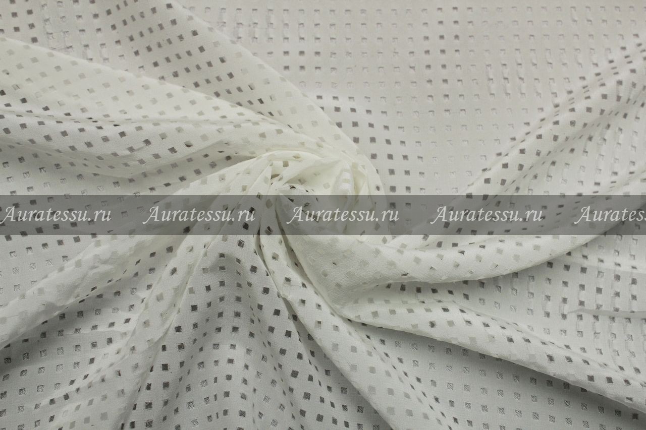 - Шелк-крепдешин Perfori молочно-белый с вырезанными квадратиками 2х2 мм