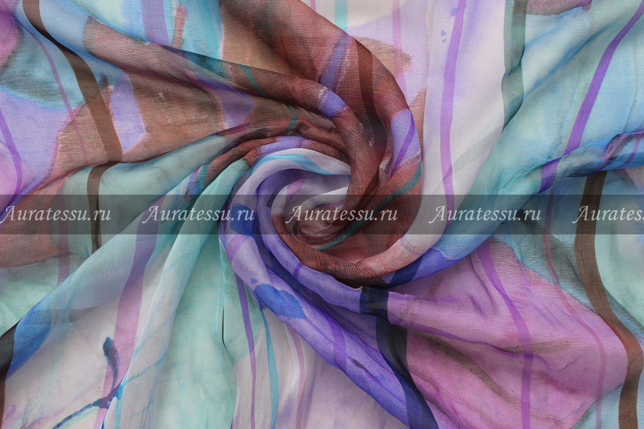 Шелковый жоржет бирюзово-сиреневый с полосой