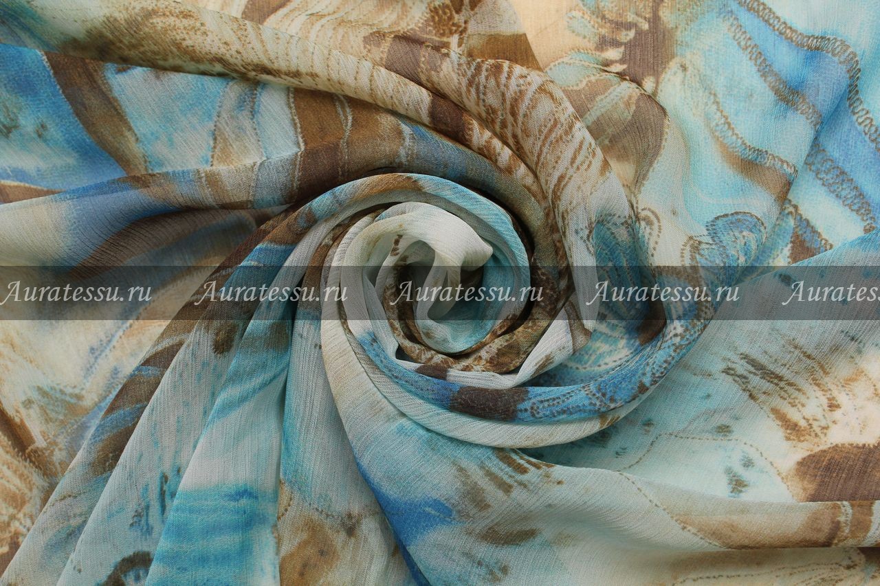 Шелк шифон-креш Fuego голубовато-карамельный крупный рисунок