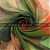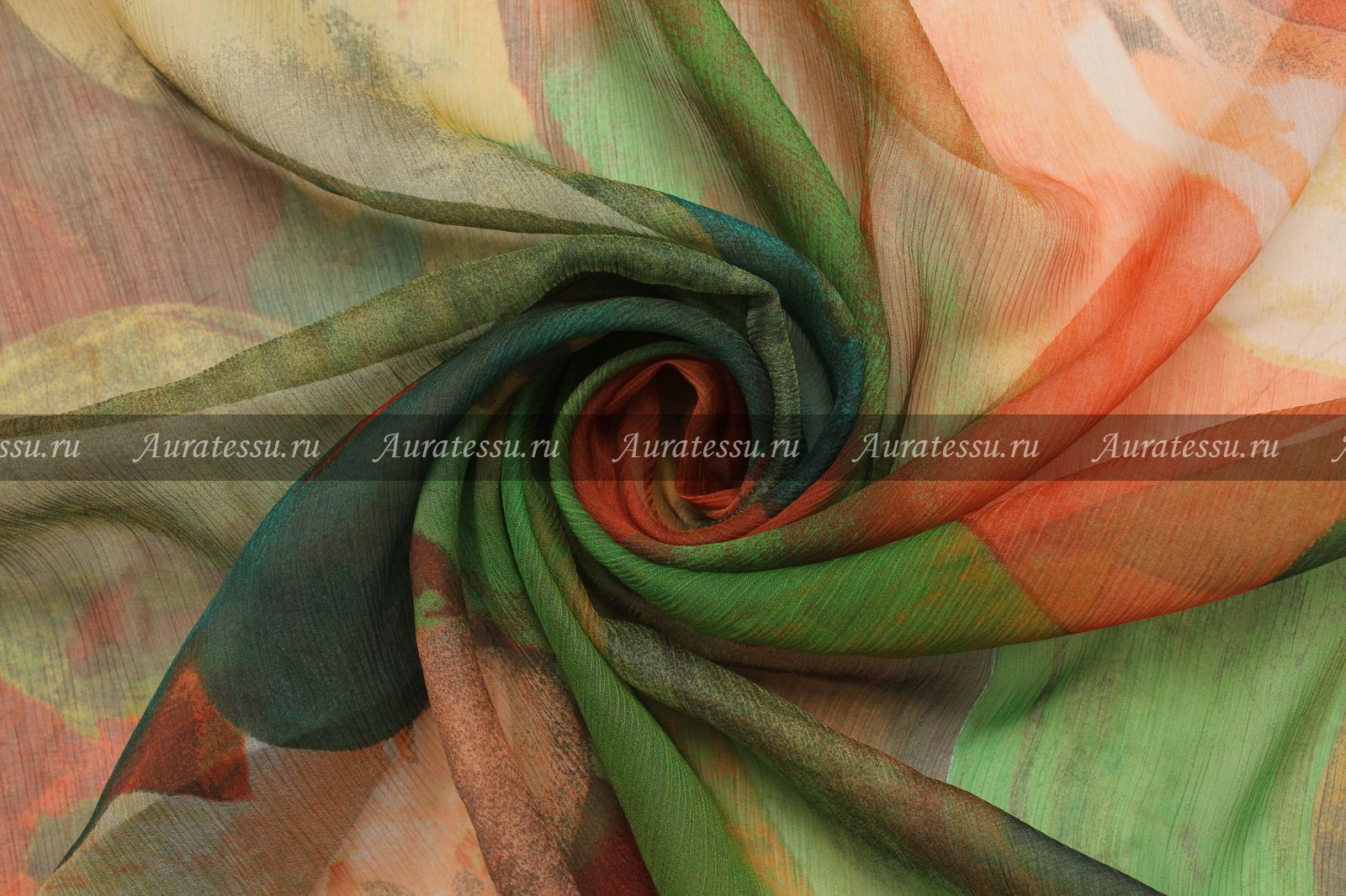 - Шёлковый шифон-креш кремово-терракотово-зелёный яркий узор