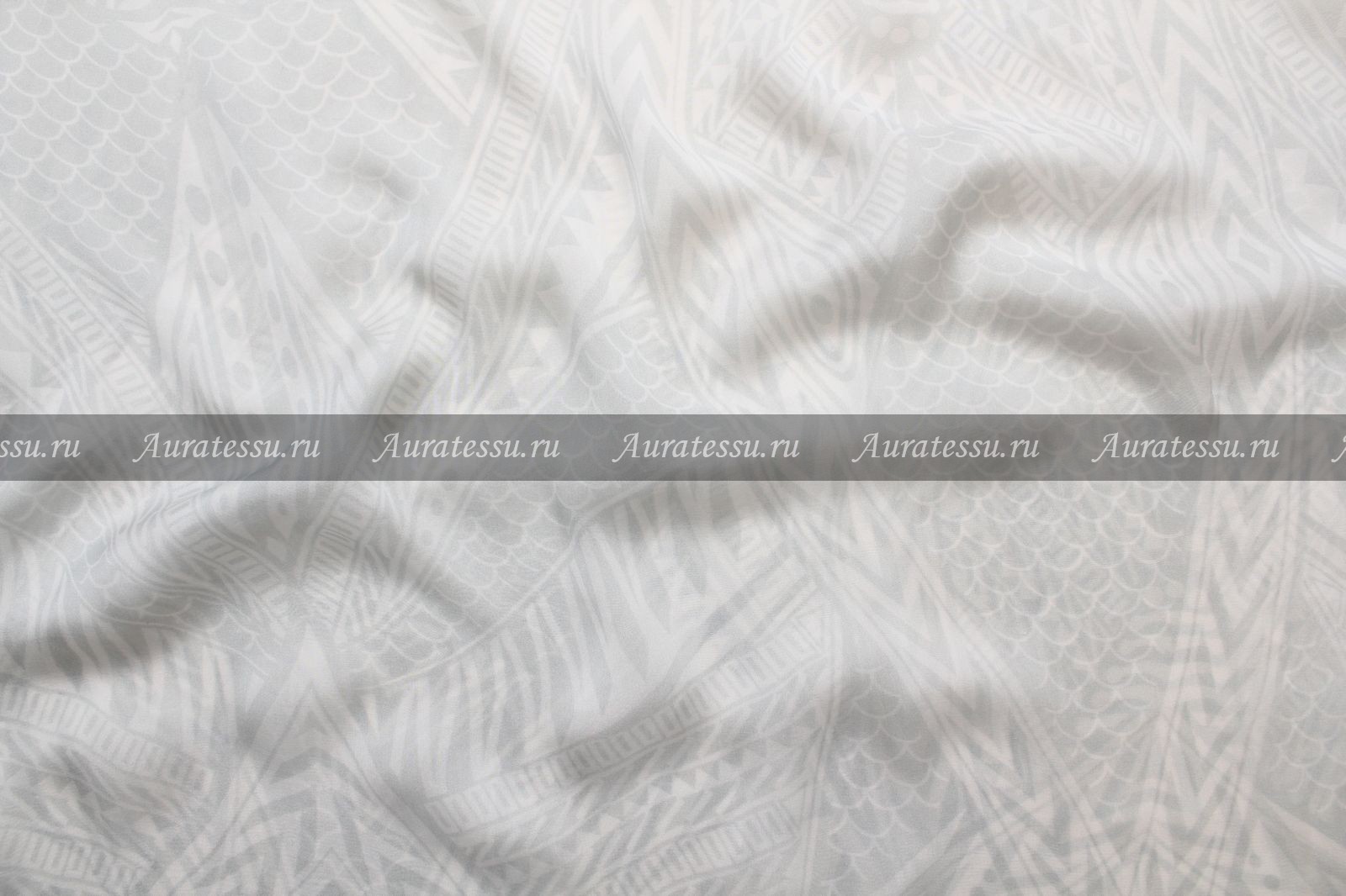 Шёлковый шифон Blumarine молочно-белого цвета с приглушённым серо-мятным узором