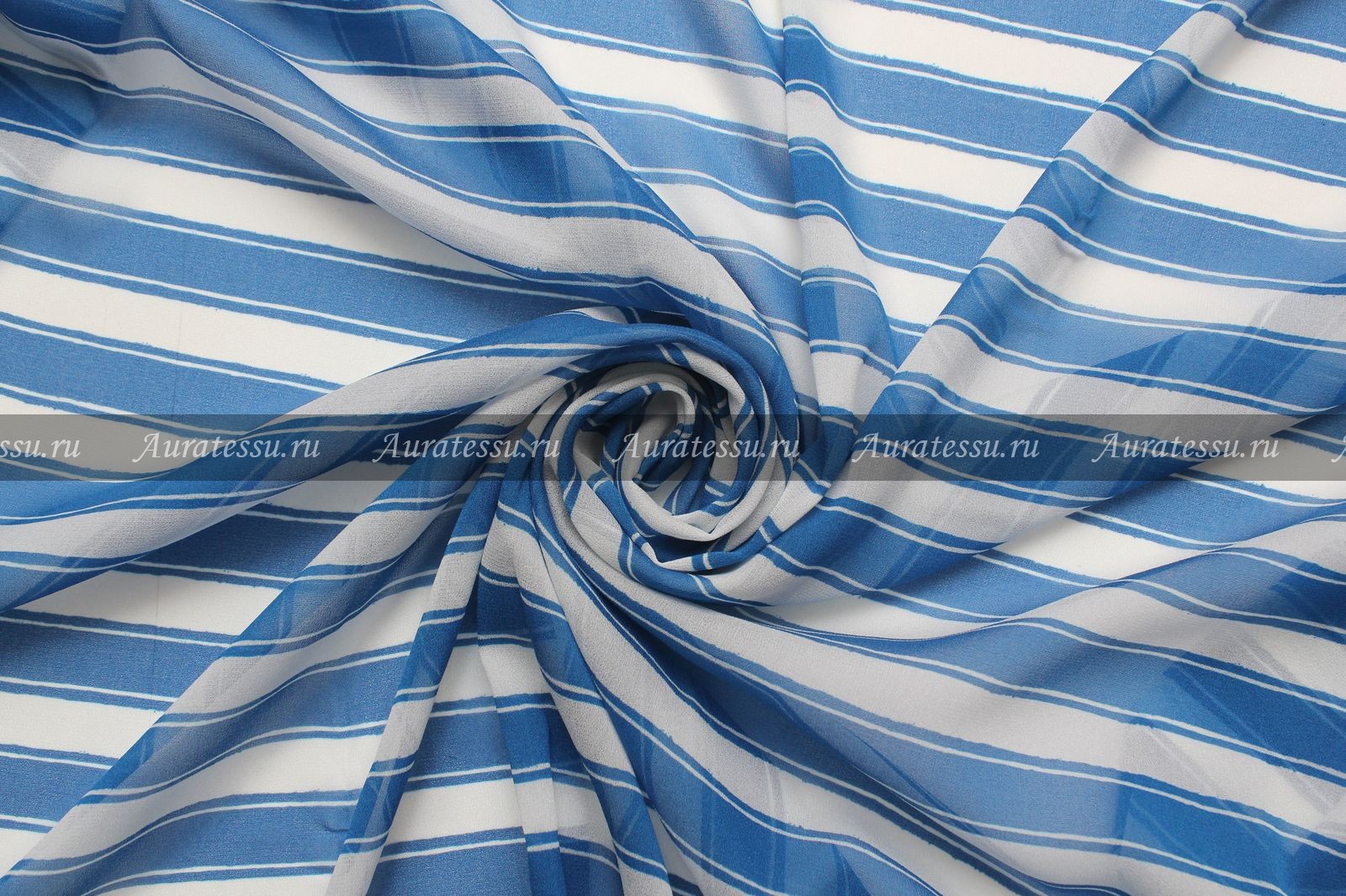 - Жоржет-шёлк стрейч D&G синие и молочные поперечные полоски