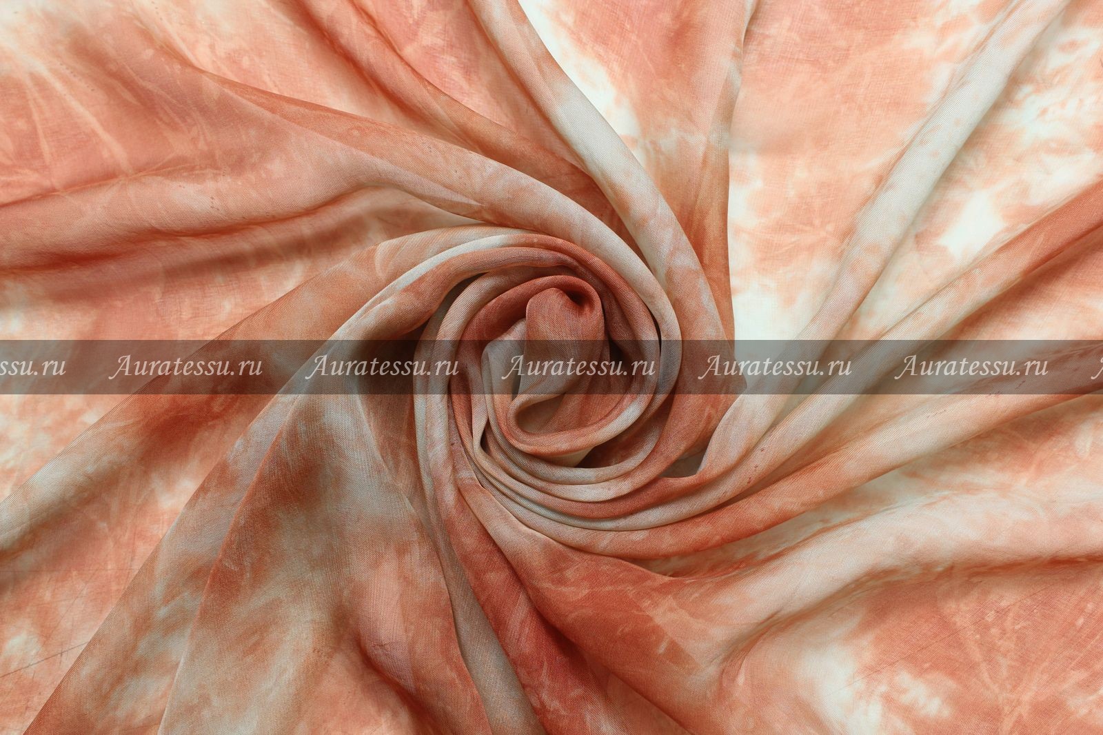 - Шёлк-шифон Marini мятно-терракотовый мраморный узор