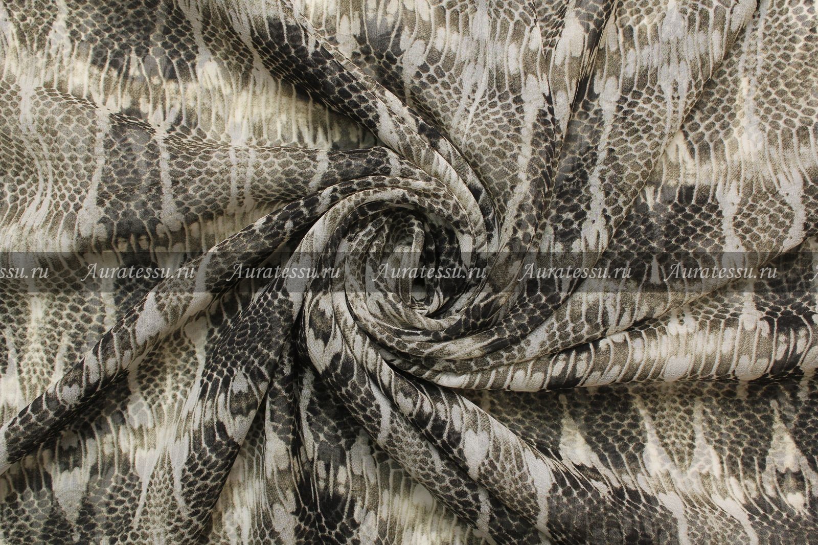 Дополнительная информация:Тонкий и полупрозрачный шёлковый жоржет стрейч с принтом под рептилию. Рисунок достаточно густой, поперечными фрагментами и напоминает чешуйчатую структуру кожи рептилии. Полотно матовое, лёгкое и пластичное. Подходит для пошива лёгкой летней одежды не узких силуэтов. Рекомендации по уходуОбщее правило от производителей для всех видов шелка и шелка в смеске с другими видами натуральных волокон- химчистка: даже если в рекомендациях стоит щадящая стирка,- Шелк нельзя отжимать в машинке и тем более в сушильном аппарате. При отжиме шелка аппаратным способом нарушается структура волокон и эффект непредсказуем. Возможна только сушка в расправленном состоянии или легкий отжим в полотенце. Шелк в смеске с другими натуральными или исусственными тканями - однозначно, химчистка, иначе ткань может "скрутить" из-за разноусадочности нитей. !!!!Из всех правил есть исключения. Смотри пункт №10 ПОДРОБНО ПО всем ВИДАМ ШЕЛКА: 1. Рекомендации по уходу: натуральный шелк – атлас, атлас-деворе (100% шёлк). Производители рекомендуют только сухую чистку. В особенности это касается шелкового атласа. Если хотите сохранить изделие в первозданном виде, то только химчистка. Нельзя при утюжке опрыскивать атласный шёлк так как могут остаться следы от воды. Утюжить с изнанки на сухую. Если хотите поэкспериментировать со своей тканью как она реагирует на стирку, то см. рекомендацию № 10 Производители рекомендуют только сухую чистку. Шифоны из натурального шелка можно стирать в режиме "Щадящая стирка" или "Стирка деликатных тканей" - без отжима, не замачивания, если они без нанесенного рельефного рисунка типа флока или с содержанием люрексовой нити. Для шифонов с флоком и люрексом рекомендации по уходу - сухая чистка. Если хотите поэкспериментировать со своей тканью, как она реагирует на стирку, то см. рекомендацию № 10. Наши эксперименты по стирке таких тканей дают в 70% положительный результат. Производители рекомендуют только сухую чистку. Если полотно без различного рода напыления и люрекса, то возможна стирка. Если хотите поэкспериментировать со своей тканью как она реагирует на стирку, то см. рекомендацию № 10. Для сложно обработанных шёлковых тканей, только сухая чистка. Производители рекомендуют только сухую чистку, так как после стирки ткань потеряет первоначальный лоск, перестанет держать форму. Рекомендации производителей - сухая чистка. Если хотите сохранить изделие в первозданном виде - только химчистка. Нельзя при утюжке опрыскивать водой, могут остаться пятна. Гладить с изнанки на сухую. Если хотите поэкспериментировать со своей тканью, то как она реагирует на стирку, то см. рекомендацию № 10 Рекомендации производителей - сухая чистка. После стирки напыление может деформироваться или осыпаться, люрекс- поблекнуть. Рекомендации всех Европейских производителей шелка, особенно с рисунком или вышивкой - химчистка. Шелковая тафта с вышивкой очень сложная в уходе, потому что как правило - вышивка производится вискозными или синтетическими нитями,а это значит , что при стирке они могут дать разную усадку. Гладить только сухим чистым утюгом с изнанки в режиме "шелк". Ткань после стирки может потерять дорогой лоск. Поэтому, конкретно тафту с вышивкой и нанесенным рисунком лучше отдавать в сухую чистку. Если хотите поэксперимент
