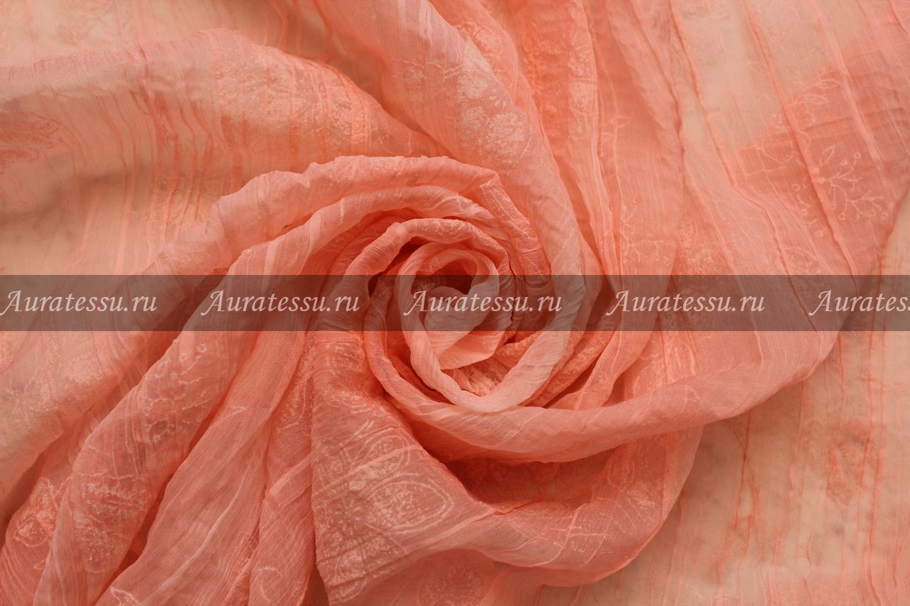 Дополнительная информация:Тонкий полупрозрачный шифон с сильным креш-эффектом. Полотно неровного окраса (под батик) розовато-персикового, размытого цвета с нанесённым по лицевой стороне флокированным напылением. Напыление в виде цветочного рисунка розовато-серебристого (бледного) цвета. Полотно нежное и пластичное. Подходит для пошива лёгкой одежды прямых и объёмных силуэтов. Рекомендации по уходуОбщее правило от производителей для всех видов шелка и шелка в смеске с другими видами натуральных волокон- химчистка: даже если в рекомендациях стоит щадящая стирка,- Шелк нельзя отжимать в машинке и тем более в сушильном аппарате. При отжиме шелка аппаратным способом нарушается структура волокон и эффект непредсказуем. Возможна только сушка в расправленном состоянии или легкий отжим в полотенце. Шелк в смеске с другими натуральными или исусственными тканями - однозначно, химчистка, иначе ткань может "скрутить" из-за разноусадочности нитей. !!!!Из всех правил есть исключения. Смотри пункт №10 ПОДРОБНО ПО всем ВИДАМ ШЕЛКА: 1. Рекомендации по уходу: натуральный шелк – атлас, атлас-деворе (100% шёлк). Производители рекомендуют только сухую чистку. В особенности это касается шелкового атласа. Если хотите сохранить изделие в первозданном виде, то только химчистка. Нельзя при утюжке опрыскивать атласный шёлк так как могут остаться следы от воды. Утюжить с изнанки на сухую. Если хотите поэкспериментировать со своей тканью как она реагирует на стирку, то см. рекомендацию № 10 Производители рекомендуют только сухую чистку. Шифоны из натурального шелка можно стирать в режиме "Щадящая стирка" или "Стирка деликатных тканей" - без отжима, не замачивания, если они без нанесенного рельефного рисунка типа флока или с содержанием люрексовой нити. Для шифонов с флоком и люрексом рекомендации по уходу - сухая чистка. Если хотите поэкспериментировать со своей тканью, как она реагирует на стирку, то см. рекомендацию № 10. Наши эксперименты по стирке таких тканей дают в 70% положительный результат. Производители рекомендуют только сухую чистку. Если полотно без различного рода напыления и люрекса, то возможна стирка. Если хотите поэкспериментировать со своей тканью как она реагирует на стирку, то см. рекомендацию № 10. Для сложно обработанных шёлковых тканей, только сухая чистка. Производители рекомендуют только сухую чистку, так как после стирки ткань потеряет первоначальный лоск, перестанет держать форму. Рекомендации производителей - сухая чистка. Если хотите сохранить изделие в первозданном виде - только химчистка. Нельзя при утюжке опрыскивать водой, могут остаться пятна. Гладить с изнанки на сухую. Если хотите поэкспериментировать со своей тканью, то как она реагирует на стирку, то см. рекомендацию № 10 Рекомендации производителей - сухая чистка. После стирки напыление может деформироваться или осыпаться, люрекс- поблекнуть. Рекомендации всех Европейских производителей шелка, особенно с рисунком или вышивкой - химчистка. Шелковая тафта с вышивкой очень сложная в уходе, потому что как правило - вышивка производится вискозными или синтетическими нитями,а это значит , что при стирке они могут дать разную усадку. Гладить только сухим чистым утюгом с изнанки в режиме "шелк". Ткань после стирки может потерять дорогой лоск. Поэтому, конкретно тафту с выши
