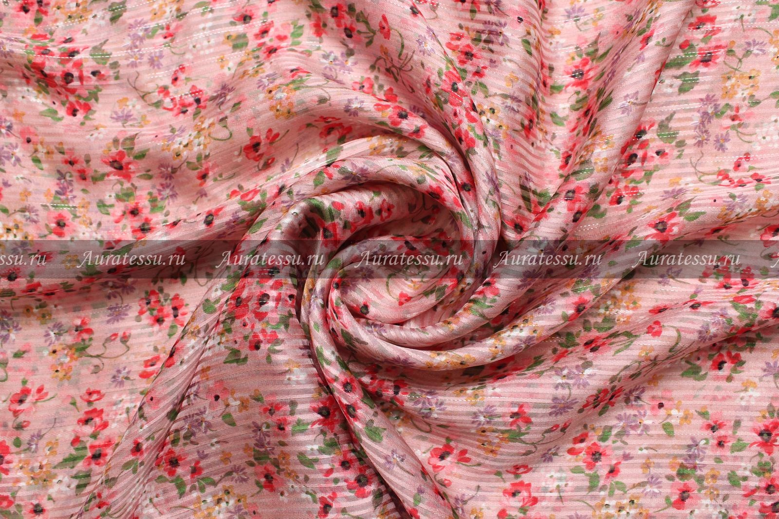 Дополнительная информация:Тонкий и полупрозрачный шёлковый шифон нежно розового цвета в продольную атласную тоненькую полоску. Каждая третья полоска украшена вотканной блестящей ниточкой. Ширина между блестящими полосками примерно 13 мм. По полю ткани печатный мелкий цветочный узор. Рисунок в сиреневых, красных, зелёных и чёрных тонах. Ткань нежная и пластичная. Отлично драпируется. Подходит для пошива лёгкой летящей одежды свободных силуэтов. Рекомендации по уходуОбщее правило от производителей для всех видов шелка и шелка в смеске с другими видами натуральных волокон- химчистка: даже если в рекомендациях стоит щадящая стирка,- Шелк нельзя отжимать в машинке и тем более в сушильном аппарате. При отжиме шелка аппаратным способом нарушается структура волокон и эффект непредсказуем. Возможна только сушка в расправленном состоянии или легкий отжим в полотенце. Шелк в смеске с другими натуральными или исусственными тканями - однозначно, химчистка, иначе ткань может "скрутить" из-за разноусадочности нитей. !!!!Из всех правил есть исключения. Смотри пункт №10 ПОДРОБНО ПО всем ВИДАМ ШЕЛКА: 1. Рекомендации по уходу: натуральный шелк – атлас, атлас-деворе (100% шёлк). Производители рекомендуют только сухую чистку. В особенности это касается шелкового атласа. Если хотите сохранить изделие в первозданном виде, то только химчистка. Нельзя при утюжке опрыскивать атласный шёлк так как могут остаться следы от воды. Утюжить с изнанки на сухую. Если хотите поэкспериментировать со своей тканью как она реагирует на стирку, то см. рекомендацию № 10 Производители рекомендуют только сухую чистку. Шифоны из натурального шелка можно стирать в режиме "Щадящая стирка" или "Стирка деликатных тканей" - без отжима, не замачивания, если они без нанесенного рельефного рисунка типа флока или с содержанием люрексовой нити. Для шифонов с флоком и люрексом рекомендации по уходу - сухая чистка. Если хотите поэкспериментировать со своей тканью, как она реагирует на стирку, то см. рекомендацию № 10. Наши эксперименты по стирке таких тканей дают в 70% положительный результат. Производители рекомендуют только сухую чистку. Если полотно без различного рода напыления и люрекса, то возможна стирка. Если хотите поэкспериментировать со своей тканью как она реагирует на стирку, то см. рекомендацию № 10. Для сложно обработанных шёлковых тканей, только сухая чистка. Производители рекомендуют только сухую чистку, так как после стирки ткань потеряет первоначальный лоск, перестанет держать форму. Рекомендации производителей - сухая чистка. Если хотите сохранить изделие в первозданном виде - только химчистка. Нельзя при утюжке опрыскивать водой, могут остаться пятна. Гладить с изнанки на сухую. Если хотите поэкспериментировать со своей тканью, то как она реагирует на стирку, то см. рекомендацию № 10 Рекомендации производителей - сухая чистка. После стирки напыление может деформироваться или осыпаться, люрекс- поблекнуть. Рекомендации всех Европейских производителей шелка, особенно с рисунком или вышивкой - химчистка. Шелковая тафта с вышивкой очень сложная в уходе, потому что как правило - вышивка производится вискозными или синтетическими нитями,а это значит , что при стирке они могут дать разную усадку. Гладить только сухим чистым утюгом с изнанки в режиме "шелк". Ткань после