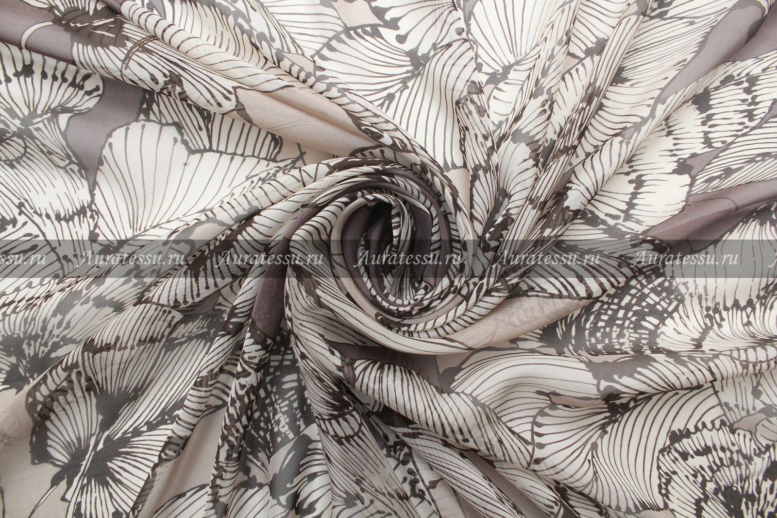 - Шёлк-жоржет Byblos с растительным серо-бежевым узором