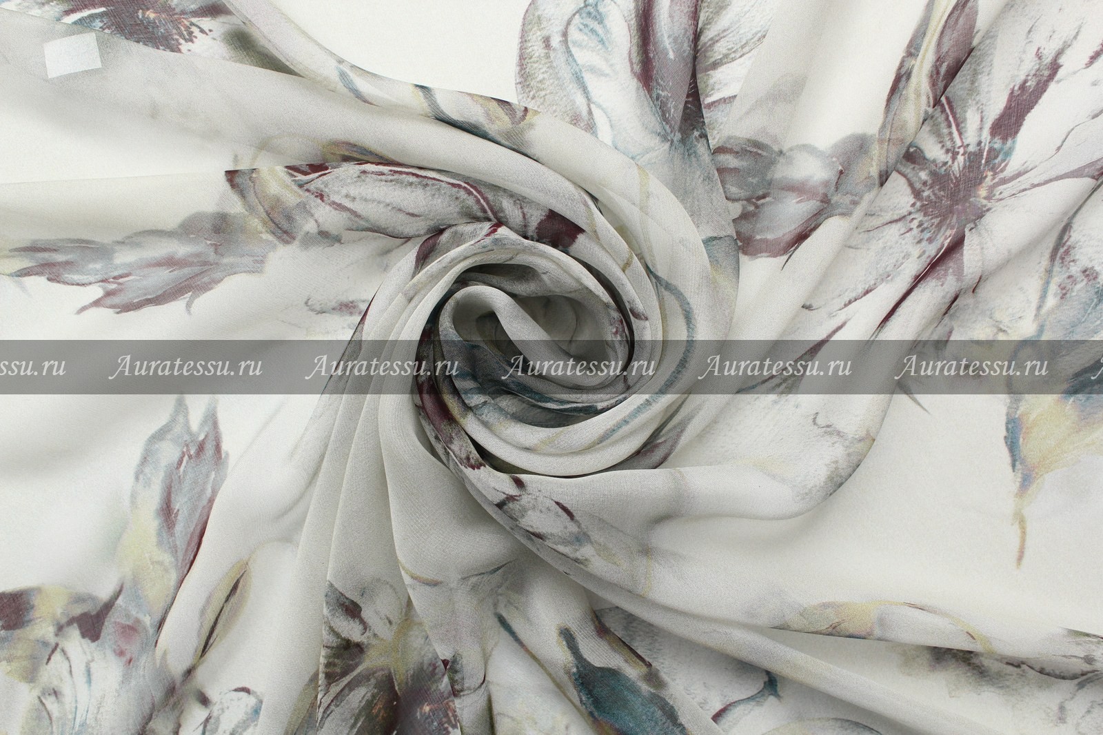 - Шёлк-жоржет серовато-ментолового цвета с цветочным узором
