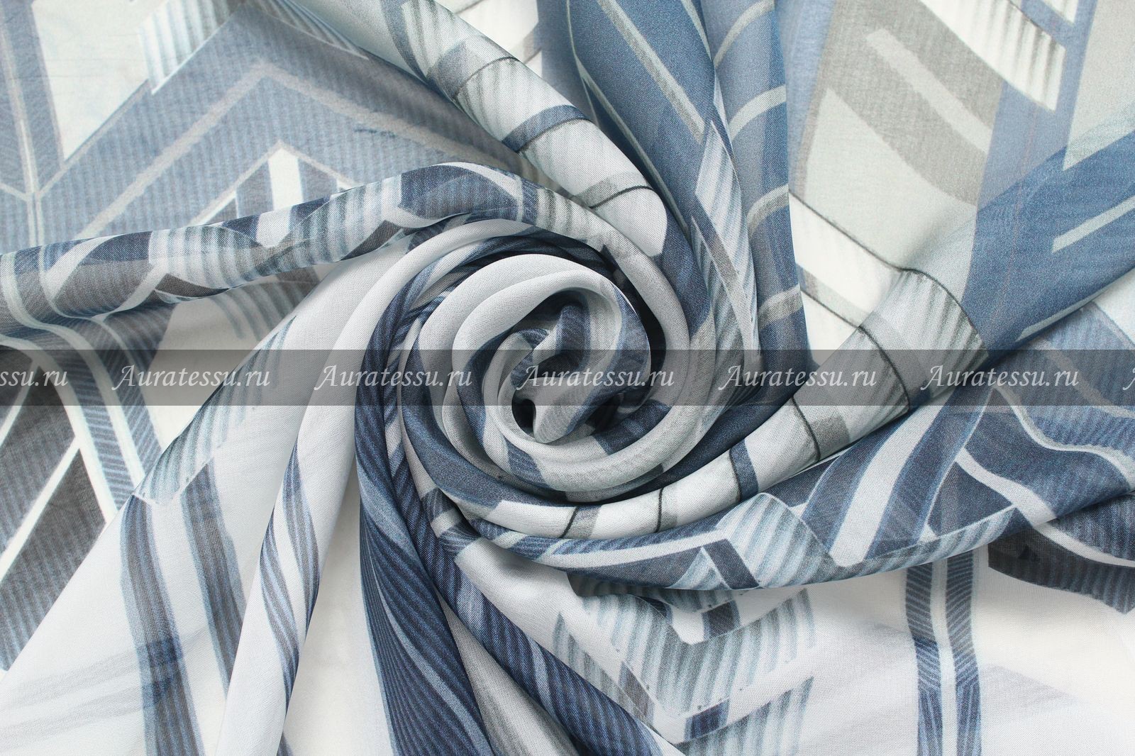 - Купон шёлк-жоржет Armani приглушённо синий и оливковый рисунок на серо-белом