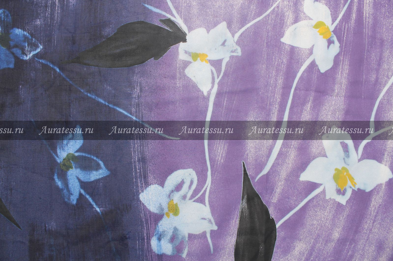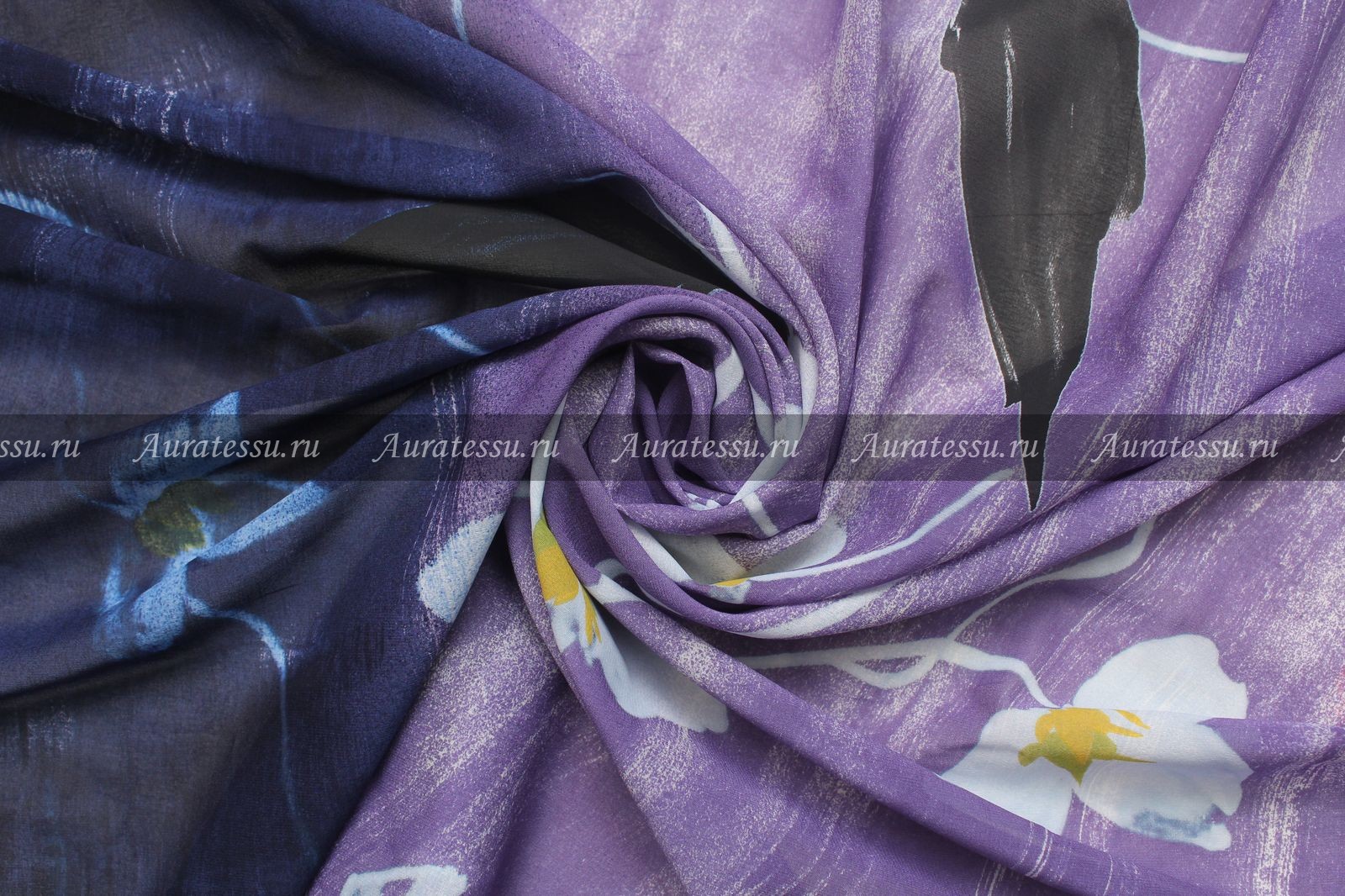 - Шёлк-жоржет-стрейч Cavalli сине-сиреневый с переходом тона и цветочным рисунком