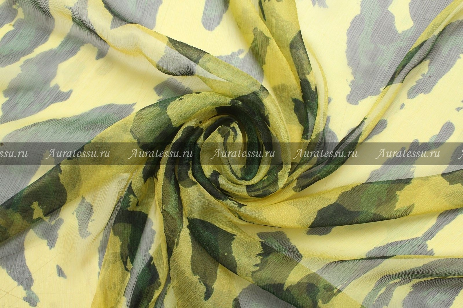 - Шифон-шёлк-креш Cavalli графитово-зелёные пятна на жёлтом фоне