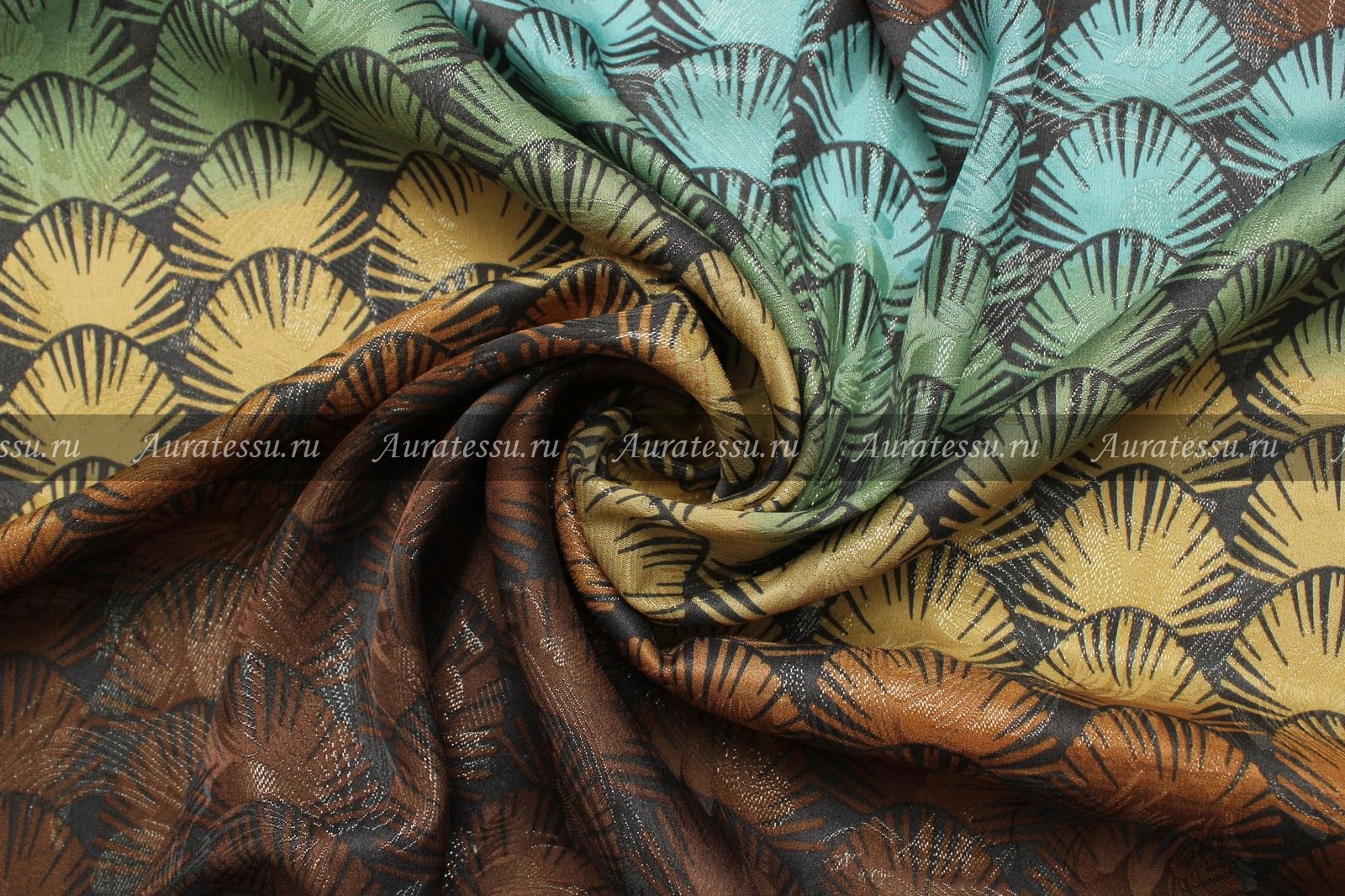 Дополнительная информация:Эффектный легкий жаккардовый шелк с фантазийным рисунком и с переходом цвета горизонтальными полосами в коричневый, светло-зеленый, голубой и желто-песочный цвет на общем антрацитовом поле. На шелковое полотно с гладкой сатиновой поверхностью нанесена вышивка прозрачной полиамидной нитью (с еле заметным растительным рисунком), которая придает ткани перламутровый эффект (блеск). На принте изображены верхушки перьев, которые расположены в такой же последовательности как чешуя рыбы-змеи, при этом "перья" окрашены. Ткань хорошо драпируется и прекрасно подойдет для коктейльного платья или любого другого нарядного изделия. Рекомендации по уходуОбщее правило от производителей для всех видов шелка и шелка в смеске с другими видами натуральных волокон- химчистка: даже если в рекомендациях стоит щадящая стирка,- Шелк нельзя отжимать в машинке и тем более в сушильном аппарате. При отжиме шелка аппаратным способом нарушается структура волокон и эффект непредсказуем. Возможна только сушка в расправленном состоянии или легкий отжим в полотенце. Шелк в смеске с другими натуральными или исусственными тканями - однозначно, химчистка, иначе ткань может "скрутить" из-за разноусадочности нитей. !!!!Из всех правил есть исключения. Смотри пункт №10 ПОДРОБНО ПО всем ВИДАМ ШЕЛКА: 1. Рекомендации по уходу: натуральный шелк – атлас, атлас-деворе (100% шёлк). Производители рекомендуют только сухую чистку. В особенности это касается шелкового атласа. Если хотите сохранить изделие в первозданном виде, то только химчистка. Нельзя при утюжке опрыскивать атласный шёлк так как могут остаться следы от воды. Утюжить с изнанки на сухую. Если хотите поэкспериментировать со своей тканью как она реагирует на стирку, то см. рекомендацию № 10 Производители рекомендуют только сухую чистку. Шифоны из натурального шелка можно стирать в режиме "Щадящая стирка" или "Стирка деликатных тканей" - без отжима, не замачивания, если они без нанесенного рельефного рисунка типа флока или с содержанием люрексовой нити. Для шифонов с флоком и люрексом рекомендации по уходу - сухая чистка. Если хотите поэкспериментировать со своей тканью, как она реагирует на стирку, то см. рекомендацию № 10. Наши эксперименты по стирке таких тканей дают в 70% положительный результат. Производители рекомендуют только сухую чистку. Если полотно без различного рода напыления и люрекса, то возможна стирка. Если хотите поэкспериментировать со своей тканью как она реагирует на стирку, то см. рекомендацию № 10. Для сложно обработанных шёлковых тканей, только сухая чистка. Производители рекомендуют только сухую чистку, так как после стирки ткань потеряет первоначальный лоск, перестанет держать форму. Рекомендации производителей - сухая чистка. Если хотите сохранить изделие в первозданном виде - только химчистка. Нельзя при утюжке опрыскивать водой, могут остаться пятна. Гладить с изнанки на сухую. Если хотите поэкспериментировать со своей тканью, то как она реагирует на стирку, то см. рекомендацию № 10 Рекомендации производителей - сухая чистка. После стирки напыление может деформироваться или осыпаться, люрекс- поблекнуть. Рекомендации всех Европейских производителей шелка, особенно с рисунком или вышивкой - химчистка. Шелковая тафта с вышивкой очень сложная в уходе, потому ч