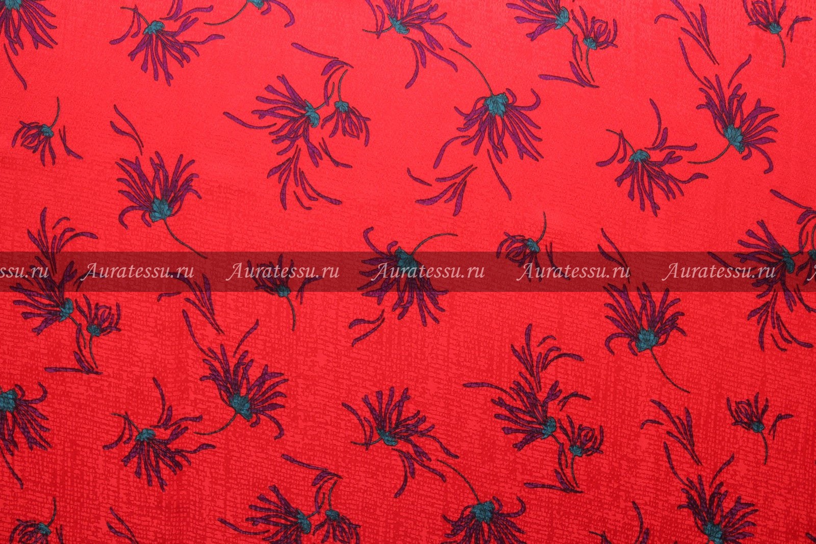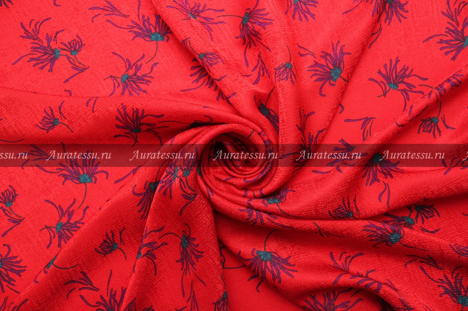 Шёлк-жаккард блузочный ярко-красный с цветами