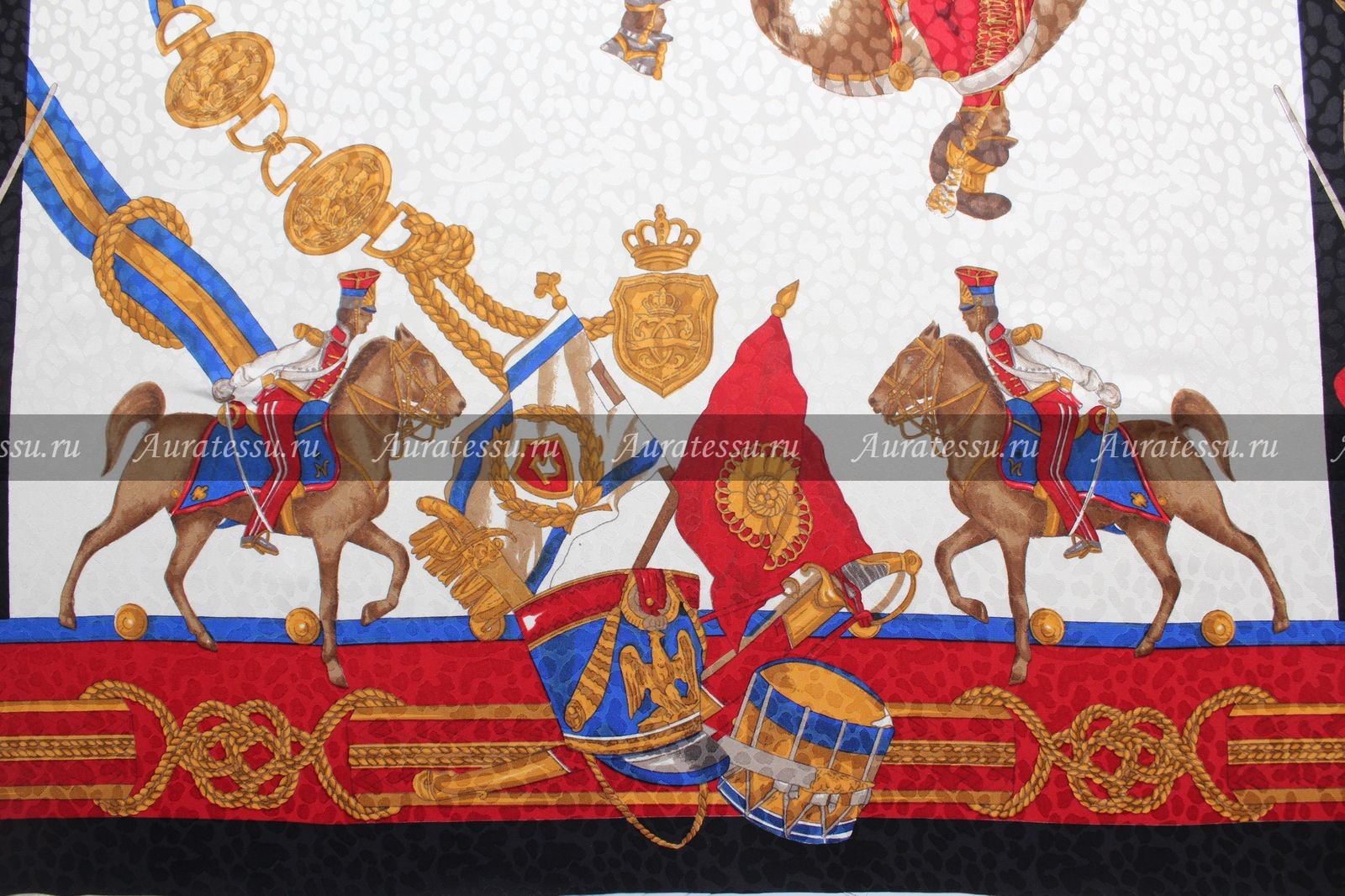 - Платок Les Copains шёлковый на жаккардовой основе с красно-чёрной рамкой «Наполеоновская армия»