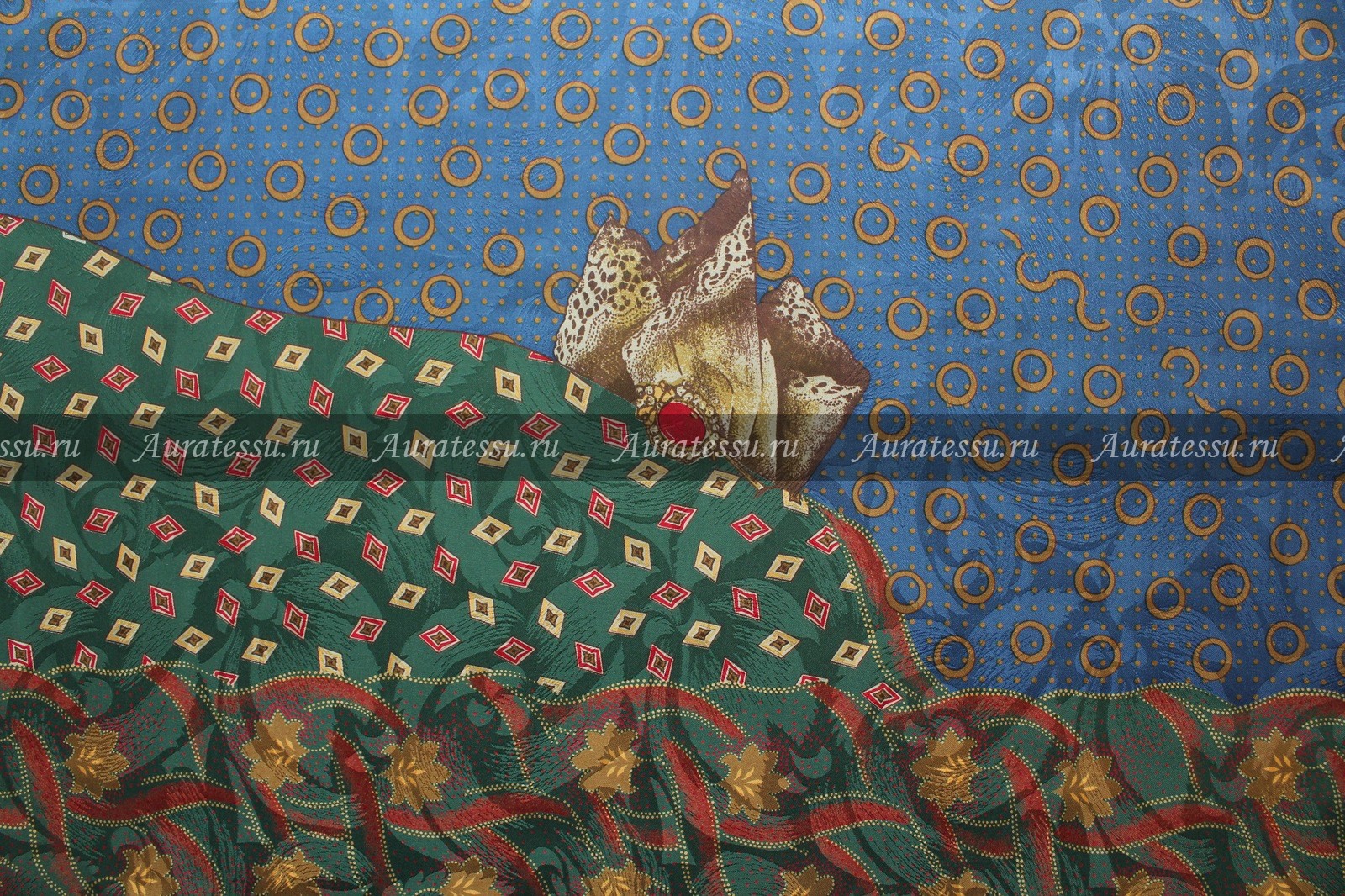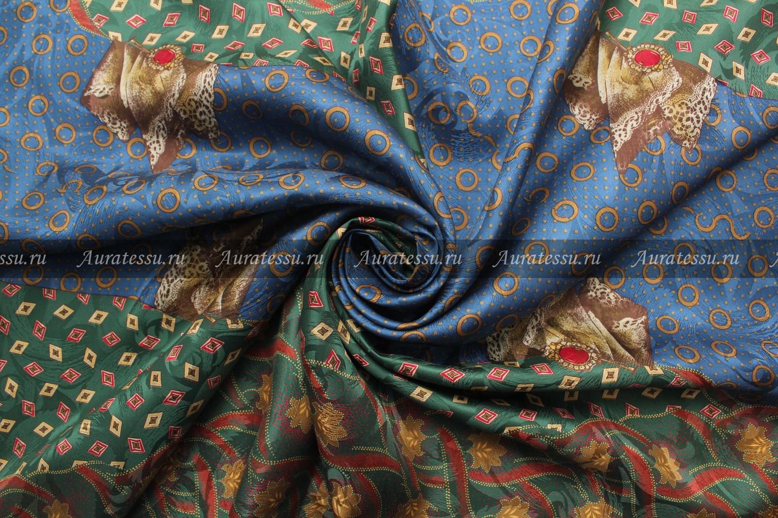 - Купон (галстук) шелк-жаккард в сине-зелёно-терракотовых тонах. Размер купона 100х92 см