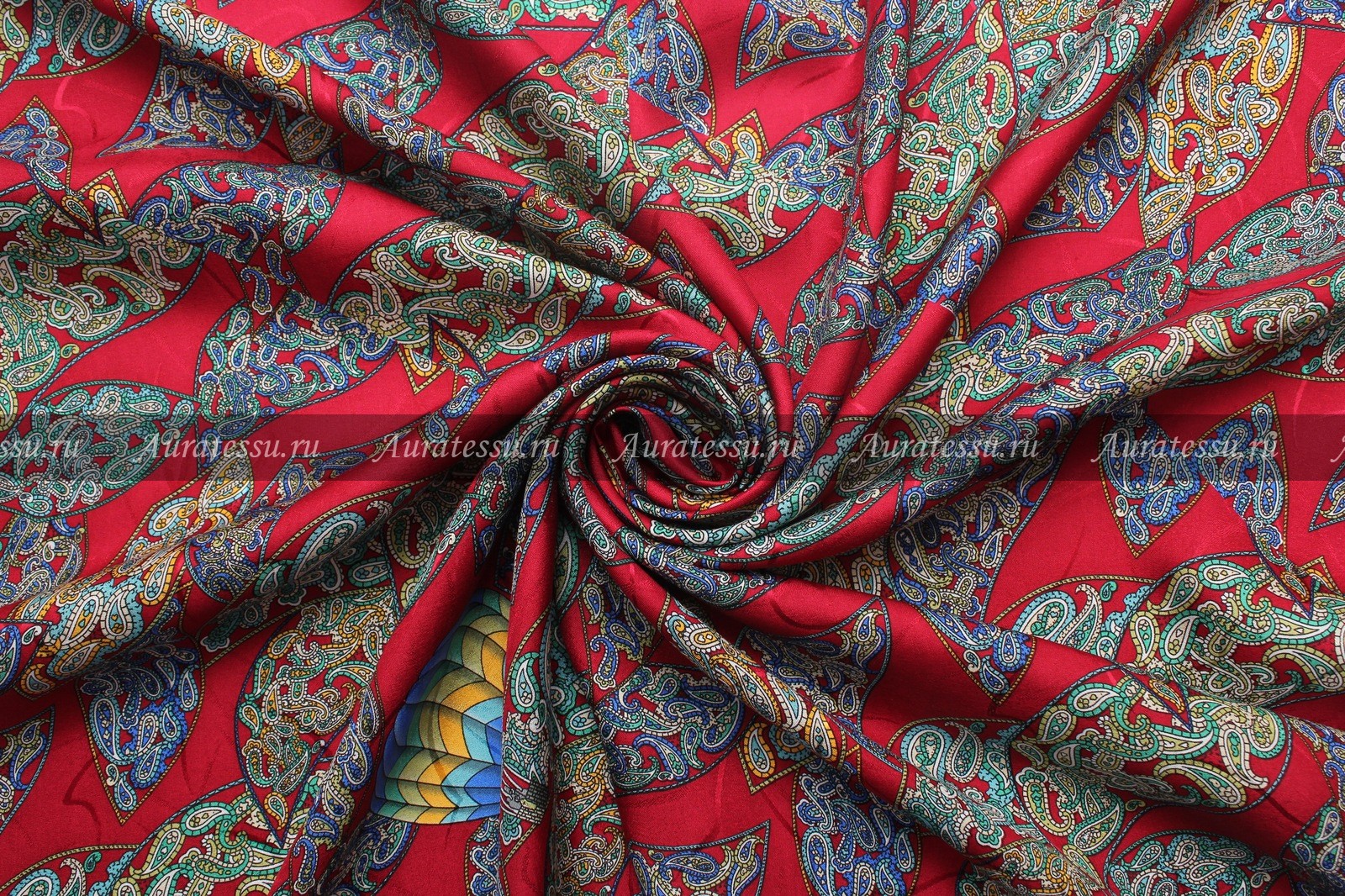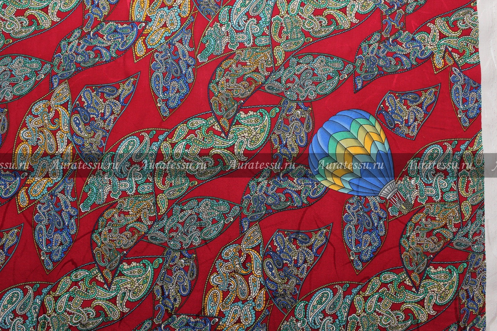 - Шёлк-жаккард галстучный купон с узором пейсли на брусничном фоне и с воздушным шаром. Размер купона 100x94 см