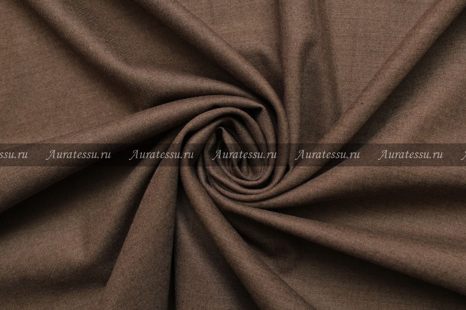 Эластичная меланжевая костюмная шерсть тёмно-бежевого цвета с серым оттенком (Camel) сатинового переплетения, средней плотности, на ощупь слегка бархатистая, достаточно упругая, отлично держит форму, при растягивании не деформируется. Подходит для пошива пиджаков, жакетов, брюк, юбок разнообразных моделей и силуэтов.