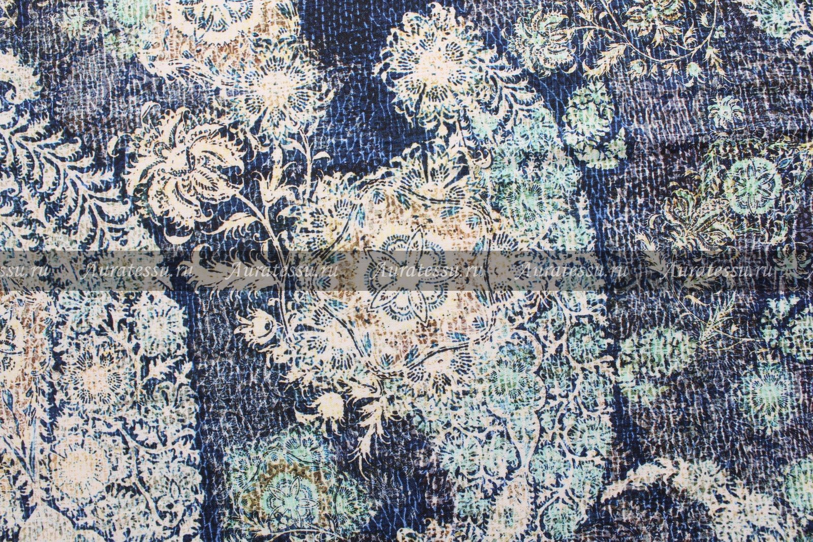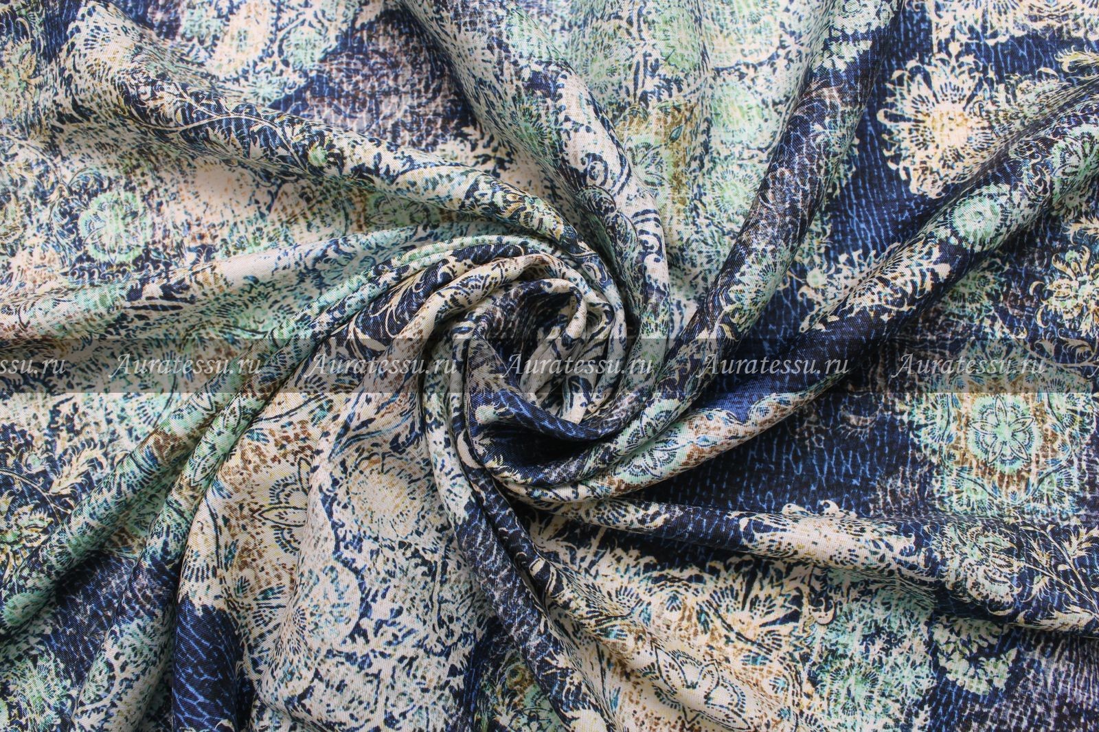 Шёлк-шерсть плательная Etro цветочно-восточный узор в ментолово - синем цвете