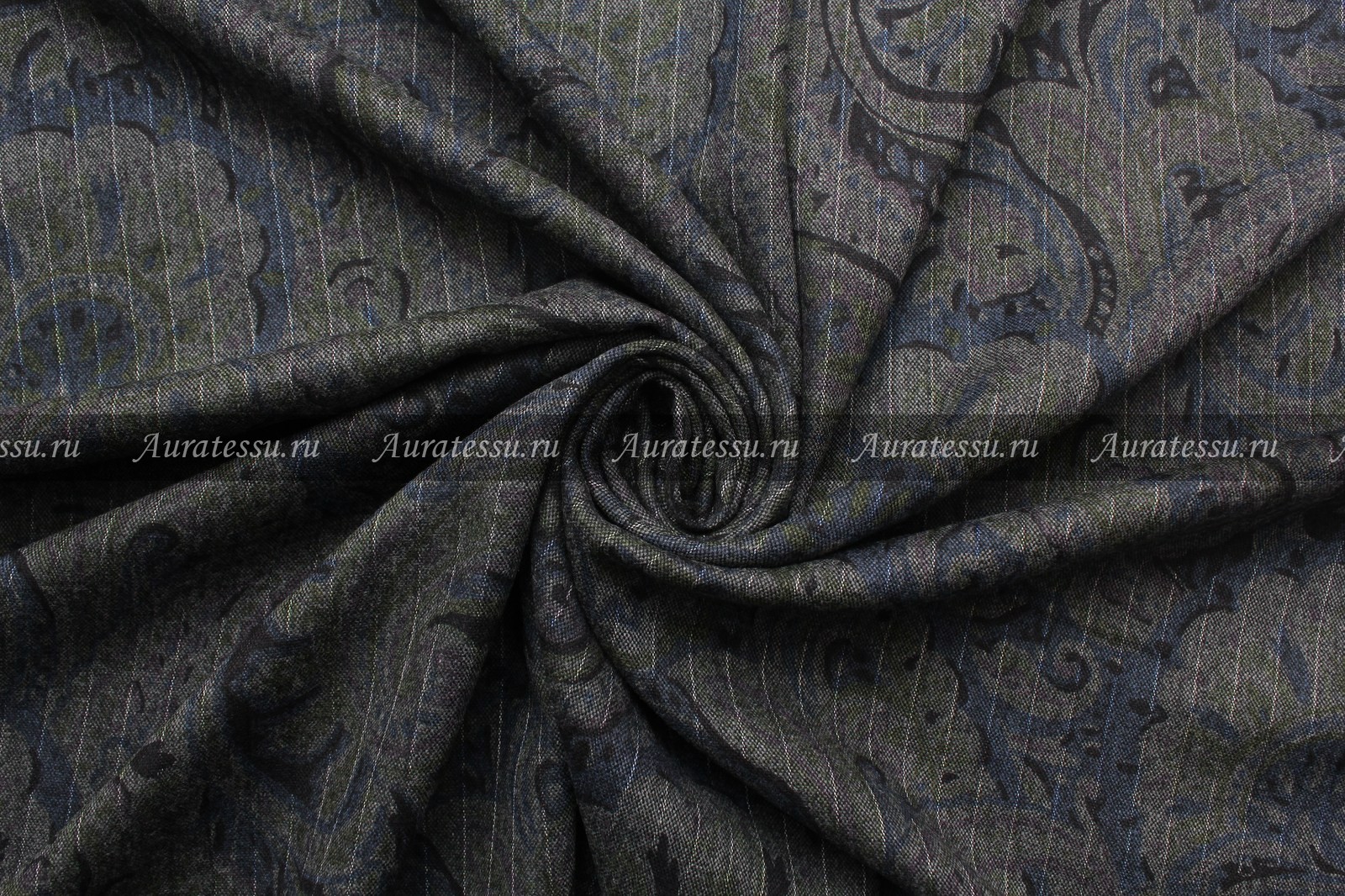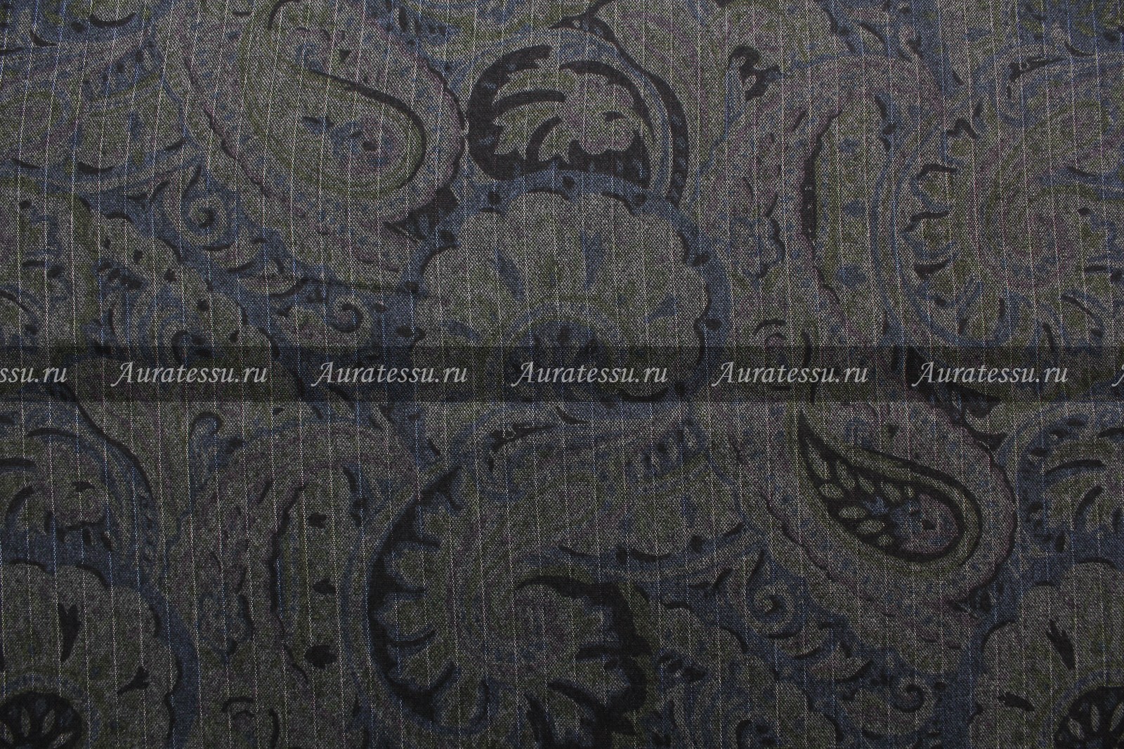 Костюмный кашемир стрейч Etro чёрно-серый меланж в полоску с печатным узором