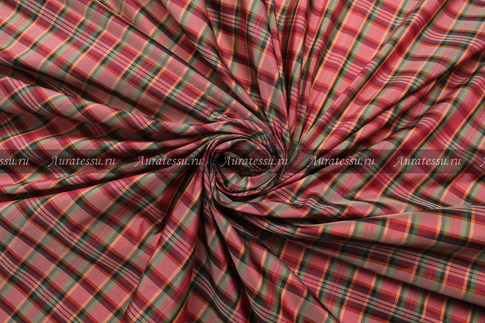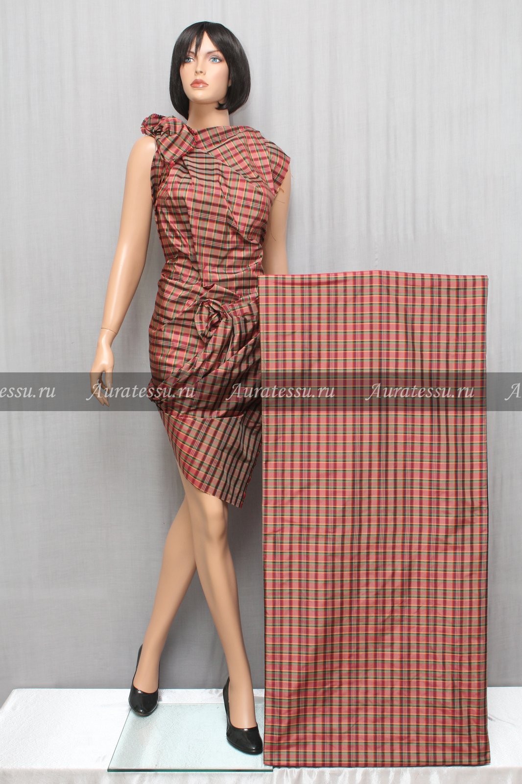 Дополнительная информация:Тонкая, упругая шёлковая тафта с клетчатым узором. Цветовая гамма в красном, зелёном, морковном, чёрном цвете, на желтовато-кремовой нити основы. Клетка не крупная. Ткань хорошо держит форму, лёгкая, упругая. Подходит для пошива лёгкой нарядной одежды не узких силуэтов. Рекомендации по уходуРекомендации по уходу за шёлковой тафтой: Рекомендации всех европейских производителей шелка, особенно с рисунком или вышивкой - химчистка. Шелковая тафта с вышивкой - очень сложная в уходе:потому что как правило - вышивка производится вискозными или синтетическими нитями,а это значит, что при стирке они могут дать разную усадку. Гладить только сухим чистым утюгом с изнанки в режиме "шелк". После стирке может потерять лоск, поэтому конкретно тафту с вышивкой и нанесенным рисунком лучше отдавать в сухую чистку. Или п/а с эластаном в том числе с вышивкой, или аппликацией из синтетических волокон. Ткани полотняных переплетений, в состав которых входит в основном полиамид с небольшим добавлением эластана можно стирать в машине при температуре до 30°С в щадящем режиме. Можно отжимать в барабане, но всегда лучше на оборотах до 500. Синтетические ткани практически не дают усадку и не мнутся. Для сушки их нужно подвешивать, лучше наизнанку. Эти ткани сохнут быстро и иногда не нуждаются в утюжке. Если вы хотите их отутюжить, то делайте это с изнаночной стороны с паром. Гладить на "шелке", можно слегка сбрызнуть. С составом – хлопок, полиамид, ацетат, металл. Ткани различных переплетений, в состав которых входит в основном хлопок, полиамид, ацетат и металлизированные мононити можно стирать вручную при температуре до 40°С опустив в мыльную воду в ёмкость большого объема. Аккуратно прополоскать в проточной воде. Не выкручивать, не мять и не комкать. Металлизированные нити не примут исходного положения, и разутюжить изделие будет сложно. Сушить в расправленном виде, лучше наизнанку. Эти ткани сохнут быстро. Если вы хотите их отутюжить, то делайте это с изнаночной стороны с паром на режиме утюга «шёлк».