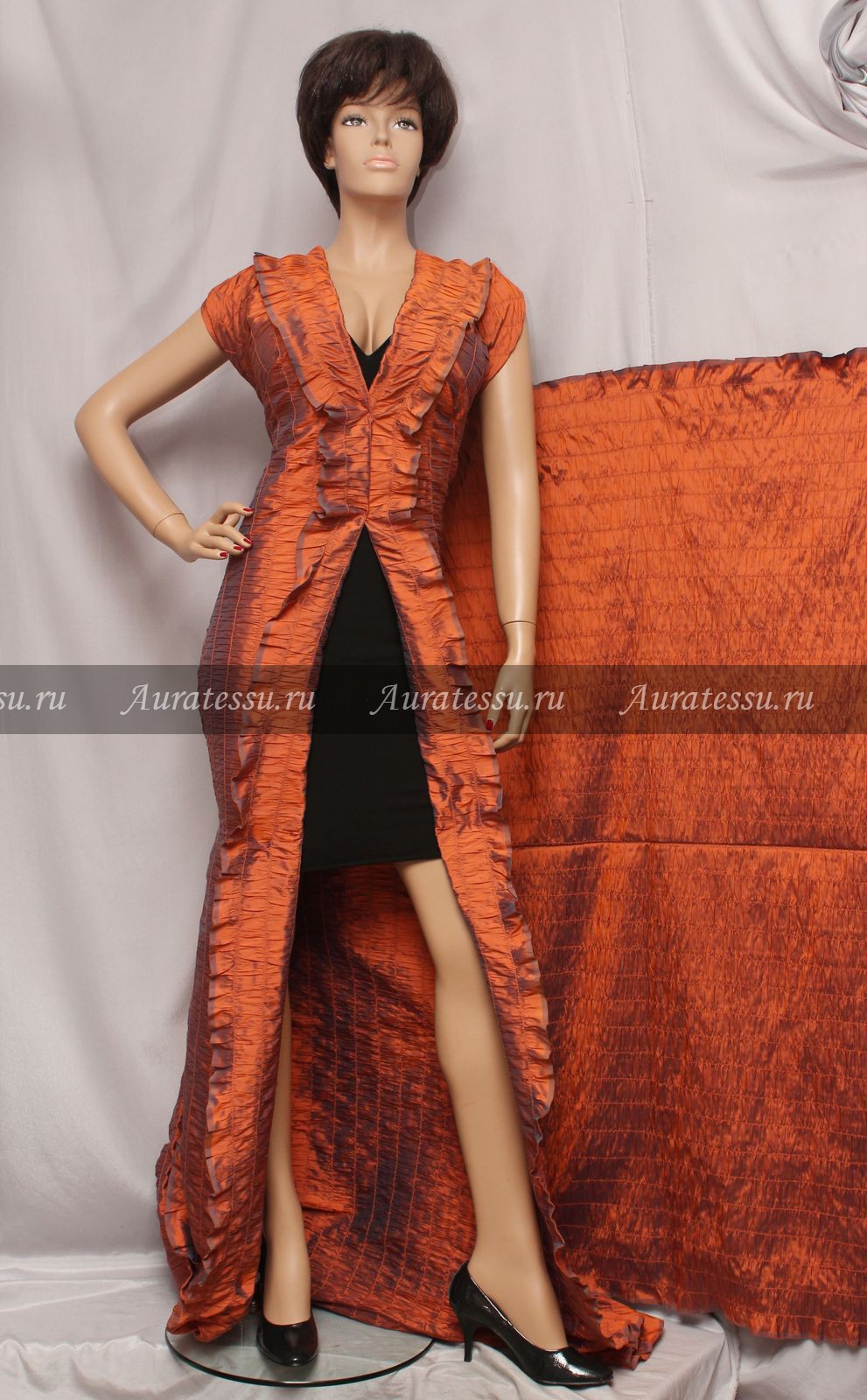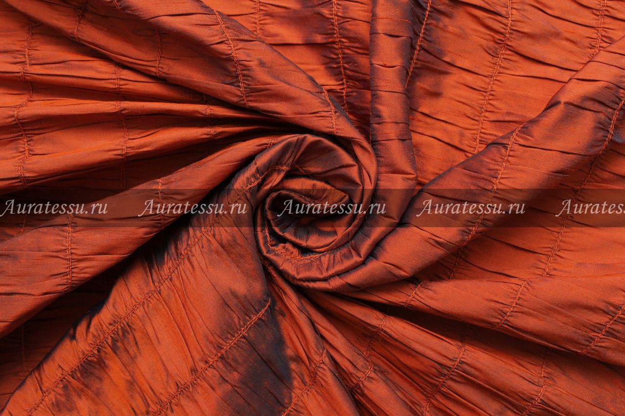 Шелковая тафта-креш коньячно-рыжая