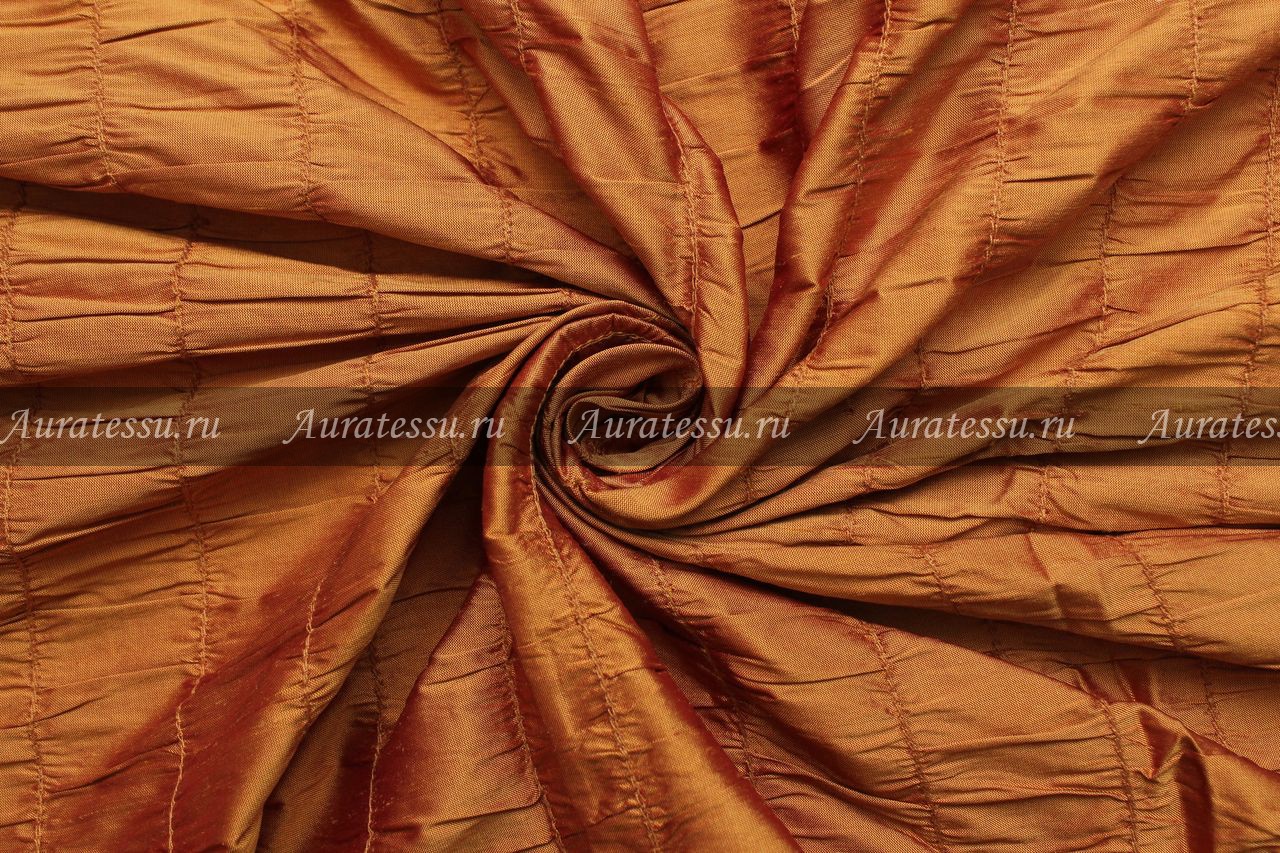 Шелк-тафта-креш терракотово-рыжая в сборку и со строчкой