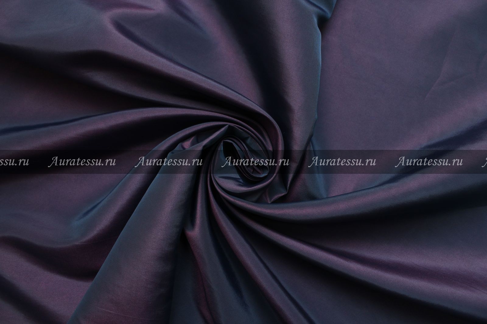 Дополнительная информация:Плотно сотканная, средней плотности, упругая тафта с переплетением нитей двух цветов: по основе тёмно-синего и по утку пурпурно-баклажанного цвета. Полотно выглядит тёмно-баклажанным с небольшим креш эффектом. Ткань достаточно скользкая, при движении шуршит, устойчивая к сминанию и истиранию. Отлично держит форму. Подходит для пошива плательно-костюмной одежды, корсетов. Желательно прямых и объёмных силуэтов. Рекомендации по уходуРекомендации по уходу за шёлковой тафтой: Рекомендации всех европейских производителей шелка, особенно с рисунком или вышивкой - химчистка. Шелковая тафта с вышивкой - очень сложная в уходе:потому что как правило - вышивка производится вискозными или синтетическими нитями,а это значит, что при стирке они могут дать разную усадку. Гладить только сухим чистым утюгом с изнанки в режиме "шелк". После стирке может потерять лоск, поэтому конкретно тафту с вышивкой и нанесенным рисунком лучше отдавать в сухую чистку. Или п/а с эластаном в том числе с вышивкой, или аппликацией из синтетических волокон. Ткани полотняных переплетений, в состав которых входит в основном полиамид с небольшим добавлением эластана можно стирать в машине при температуре до 30°С в щадящем режиме. Можно отжимать в барабане, но всегда лучше на оборотах до 500. Синтетические ткани практически не дают усадку и не мнутся. Для сушки их нужно подвешивать, лучше наизнанку. Эти ткани сохнут быстро и иногда не нуждаются в утюжке. Если вы хотите их отутюжить, то делайте это с изнаночной стороны с паром. Гладить на "шелке", можно слегка сбрызнуть. С составом – хлопок, полиамид, ацетат, металл. Ткани различных переплетений, в состав которых входит в основном хлопок, полиамид, ацетат и металлизированные мононити можно стирать вручную при температуре до 40°С опустив в мыльную воду в ёмкость большого объема. Аккуратно прополоскать в проточной воде. Не выкручивать, не мять и не комкать. Металлизированные нити не примут исходного положения, и разутюжить изделие будет сложно. Сушить в расправленном виде, лучше наизнанку. Эти ткани сохнут быстро. Если вы хотите их отутюжить, то делайте это с изнаночной стороны с паром на режиме утюга «шёлк».