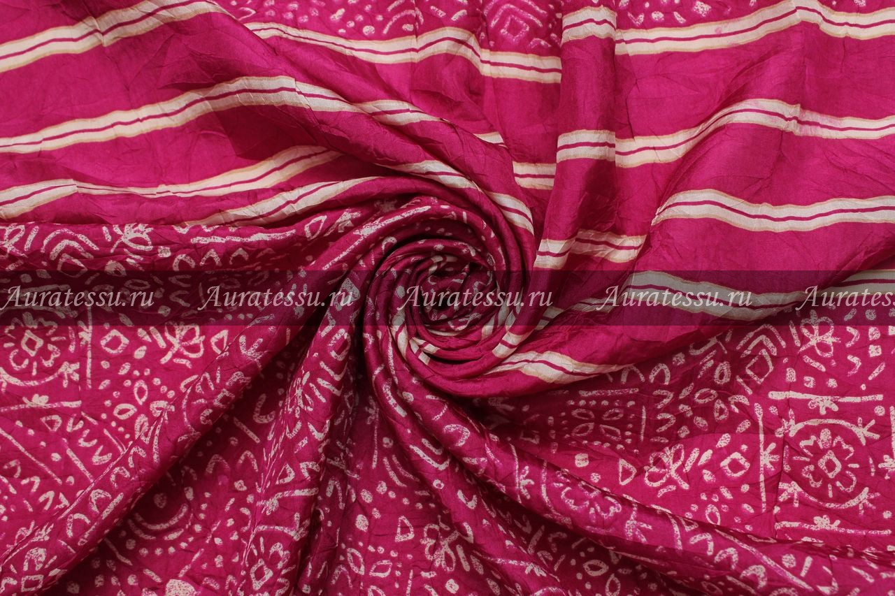Дополнительная информация:Эффектная шелковая купонная ткань с креш эффектом яркого цвета фуксии. Рисунок в виде мелкого узора в этно-стиле бело-молочного цвета в рамке. Размер купона 85*138 см. Подходит для пошива легких платьев, туник, блуз. Рекомендации по уходуОбщие рекомендации по уходу, для разных типов тканей: Льняные вещи мало пачкаются, не ворсятся, прекрасно впитывают влагу и при этом быстро высыхают. Льняное полотно отличается особой прочностью. К благородным свойствам льна относят его сильную сминаемость. Льняные полотна можно кипятить. Температуру стирки выбирают в зависимости от отделки ткани. Цветное полотно стирают при температуре 60 градусов. Изделия изо льна после стирки могут дать усадку (если ткань перед пошивом не была продекатирована) до 15%. Изделия из хлопка очень прочные, хорошо переносящие воздействие высоких температур. Особенность хлопка — его прекрасная способность впитывать влагу. Недостатками хлопка называют его высокую сминаемость и сильную усадку при стирке. Хлопок долго сохнет после стирки. Белые хлопковые плотные ткани можно стирать в машине при максимальной температуре, цветные ткани — при температуре до 60 градусов, тонкие цветные ткани — при температуре до 40 градусов. Для стирки белых полотен используют универсальные моющие средства, для цветных — мягкие моющие средства и средства без отбеливателя. Хлопковые вещи можно сушить и в машинной сушке, но надо помнить, что при этом они могут дать большую усадку. Изделия с облагораживающей отделкой советую развешивать для просушки мокрыми.