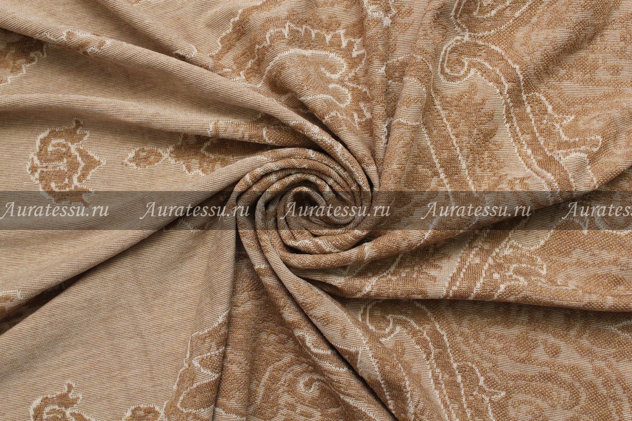 Трикотаж с каймой с бежевым вензельным узором по кайме с двух сторон